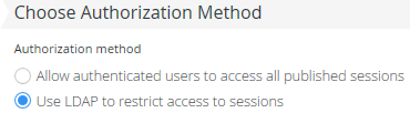For Authorization method, select Use LDAP to restrict access to sessions.