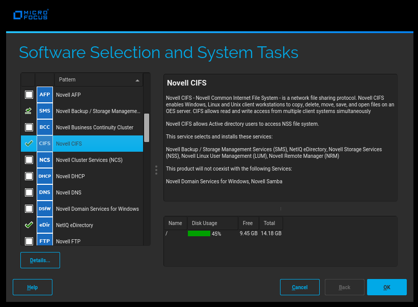 For information about the OES installation process, see the OES 2018 SP3: Installation Guide.