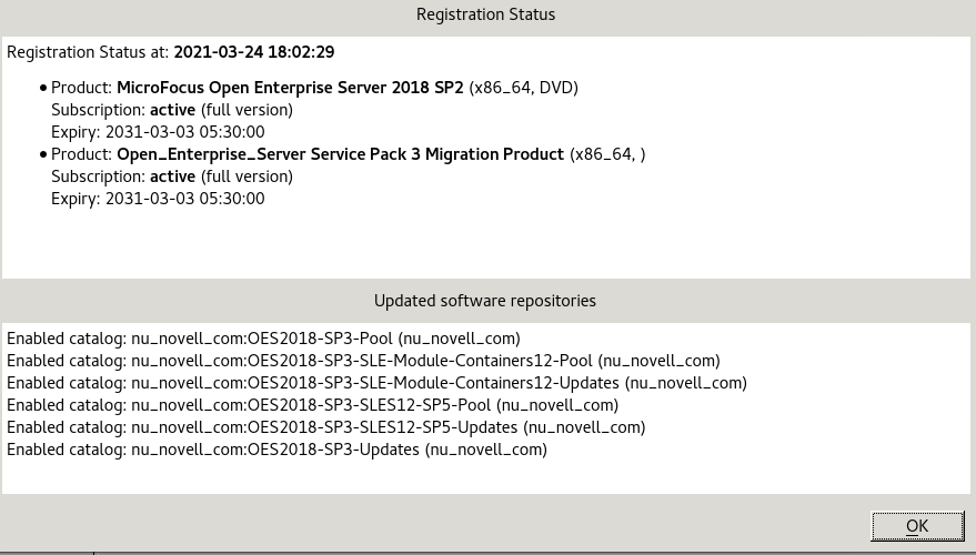 MicroFocus Open Enterprise Server 2018 SP3 2018.2-0 -> 2018.3-0