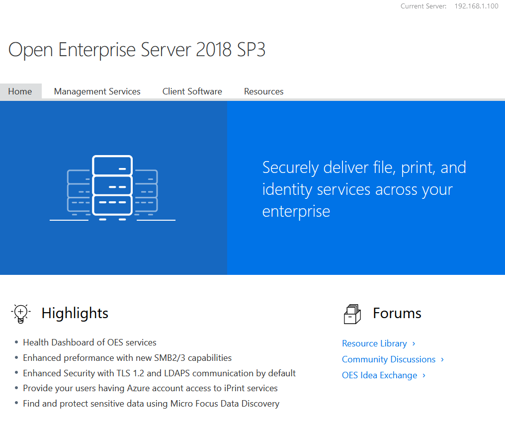 2. (Optional) If you want to look at the eDirectory tree and begin to see how iManager works, go to the OES Information and Management web page, click Management Tools > iManager, then log in as user Admin (the user you created during product installation).