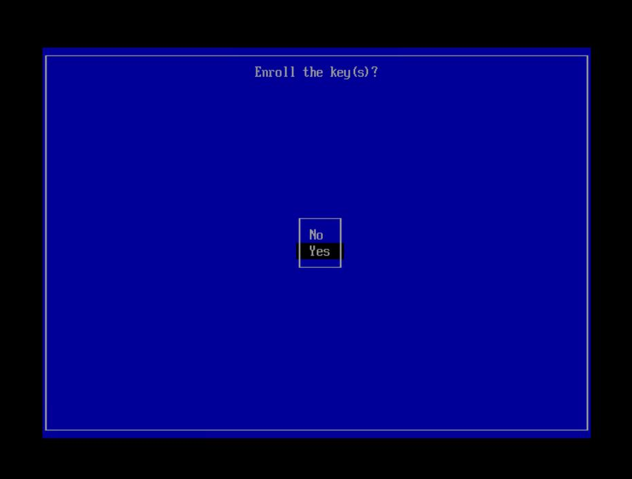 If for any reason the key is not enrolled properly during the OES installation process, you must manually import the certificate and enroll it in the MOK database.