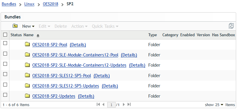 The local name of each bundle will be set to _%PRODUCT%%VERSION%-SP%SUPPORTPACK%-Pool, in other words the bundle name is prefixed with “_” and “ _bundle” is removed from the original bundle name, i. e. _OES2018-SP2-Pool.