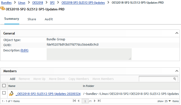 Update Bundle Group: These bundle groups are used to assign updates to all devices that are on the same product, version and support pack, such as all OES2018 SP2 servers.