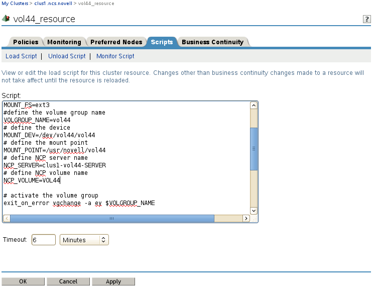 Select the cluster resource’s name link to open the Properties page, then click the Scripts tab.