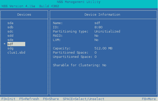 In the NSSMU main menu, select Linux Volumes, then press Enter.