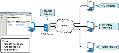 OES includes the open source MySQL 5.0.67 database server on the Linux platform. When combined with a web application and a web server, MySQL is a very reliable and scalable database for use in hosting eCommerce and business-to-business web applications.