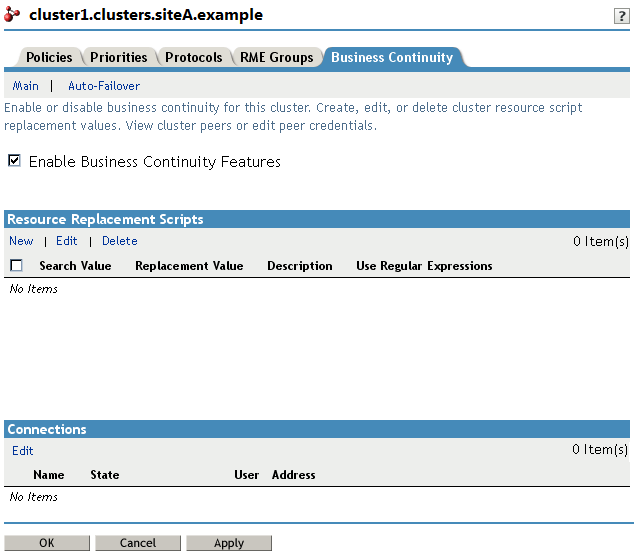 In the Properties dialog box, select the Business Continuity tab.