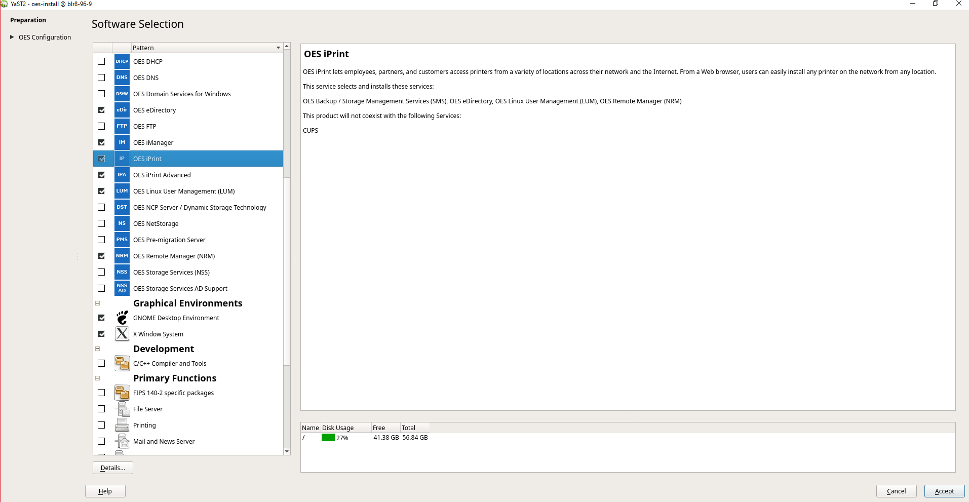 IMPORTANT:By default, the iPrint dependency packages are selected.