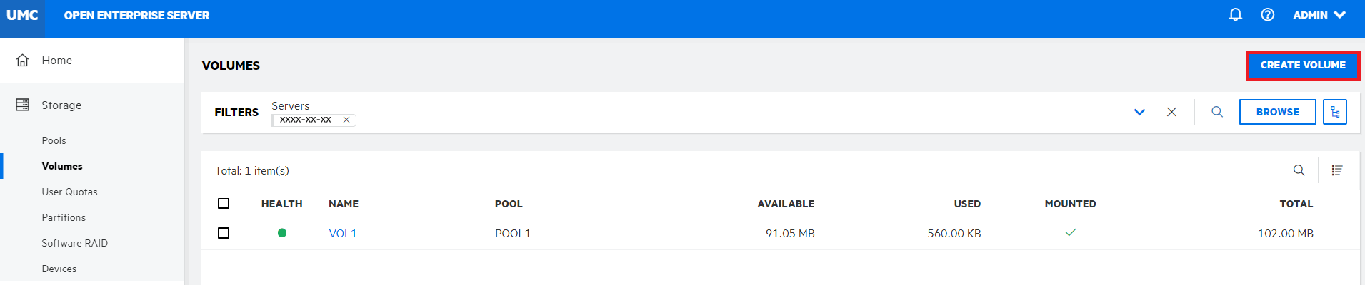 Specify the Volume Quota as required or select “Quota to grow to the pool size” checkbox to allow the volume to expand to the size of the pool.