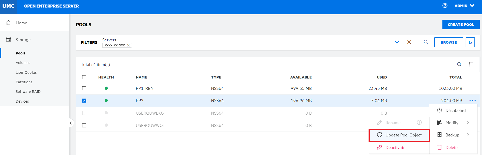 NOTE:Updating eDirectory pool object is a recovery process and is required only when the pool object is lost, corrupted, or deleted.