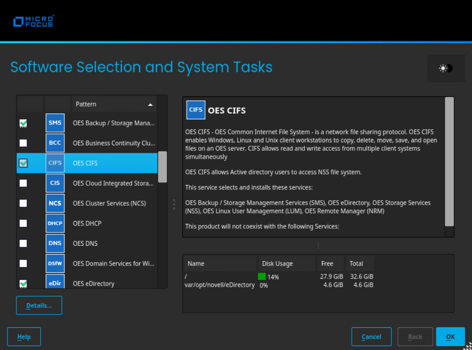 From the OES Services option, select OES CIFS, then click Accept.