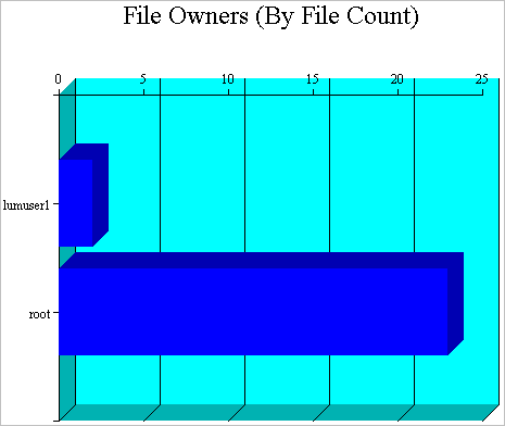 The Profiles portion of the inventory report graphically displays information about the volume. Graphical profiles are displayed by size in bytes and file count for the following categories: