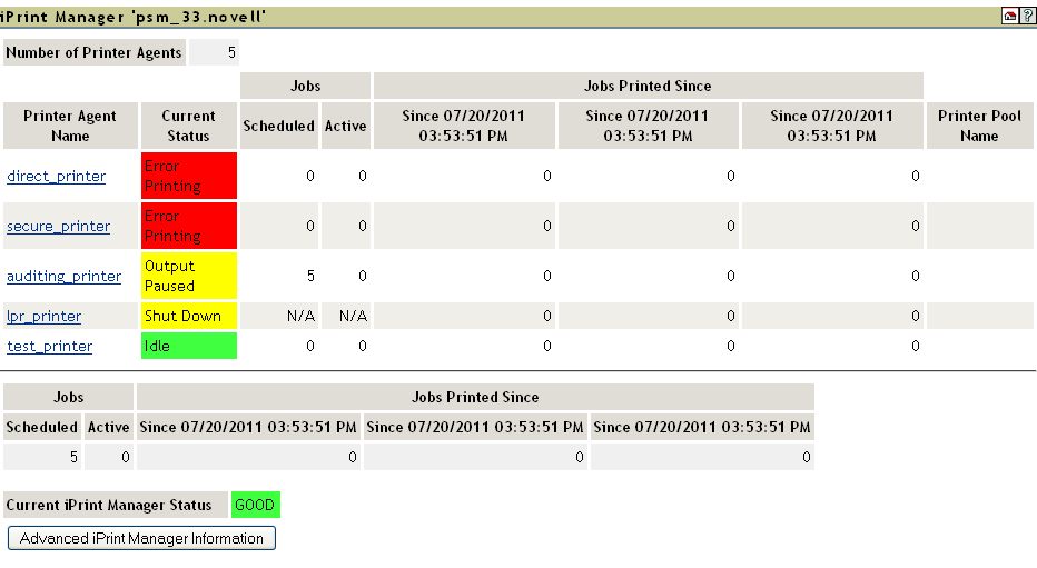 In the iPrint Manager Health Monitor, locate secure_printer in the list.