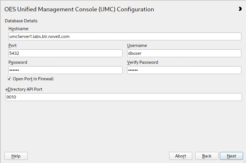 UMC ships with PostgreSQL by default. The default database port number is 5432, and the eDirectory API port is 9010; both ports can be modified if necessary.