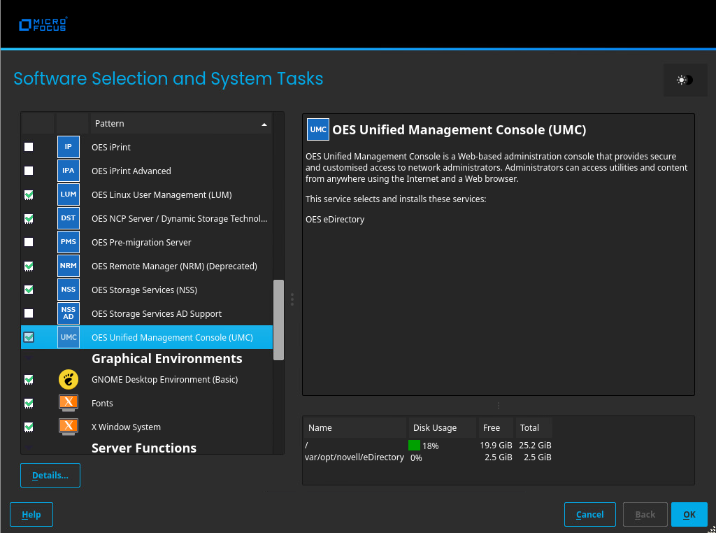 From the OES Services option, select OES Unified Management Console (UMC) and click OK.