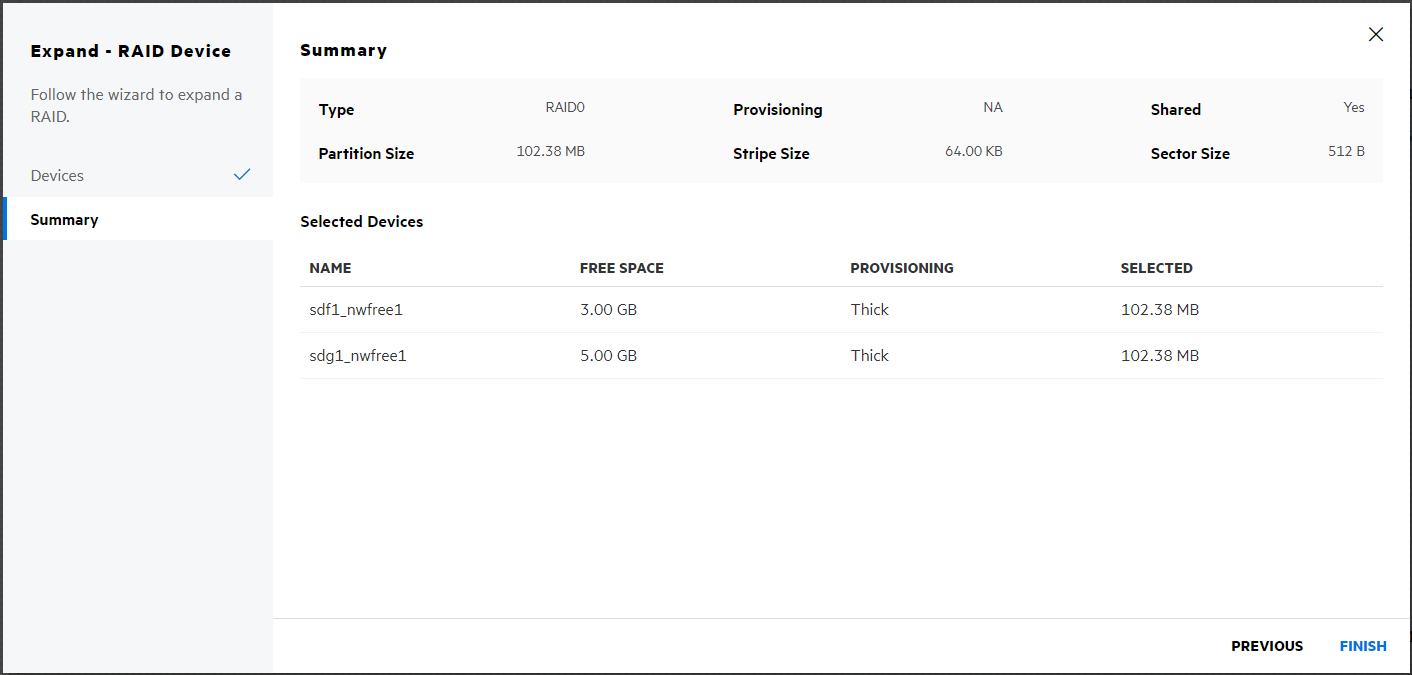 The wizard lets you select the partitions with free space to meet the RAID's current partition size and are not members of the RAID.