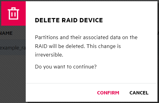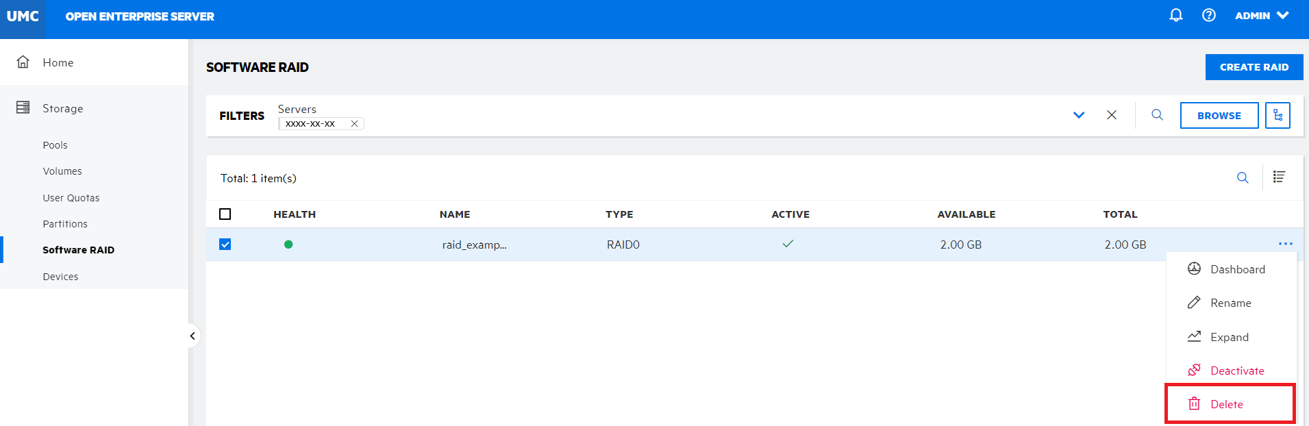 The deleted software RAID device is not accessible from the SOFTWARE RAID page.