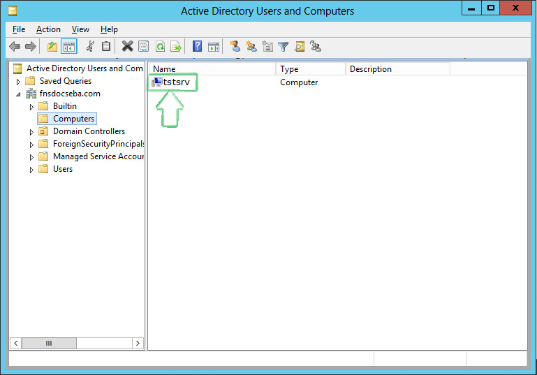 After successfully installing and configuring NSS AD, you should find an entry for the cluster node object created in the Active Directory Users and Computers screen of the AD server as shown in the following image.