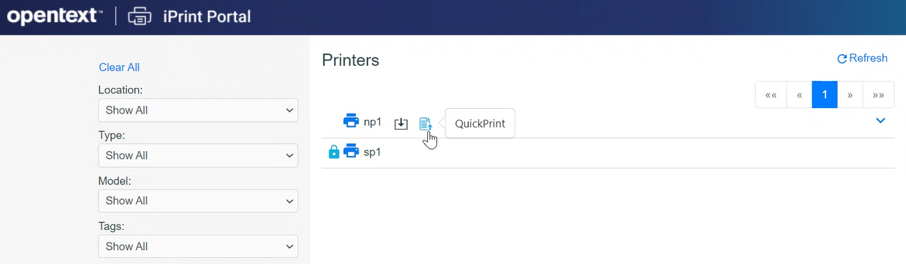 Expand a printer and click QuickPrint or select the QuickPrint icon next to a printer.