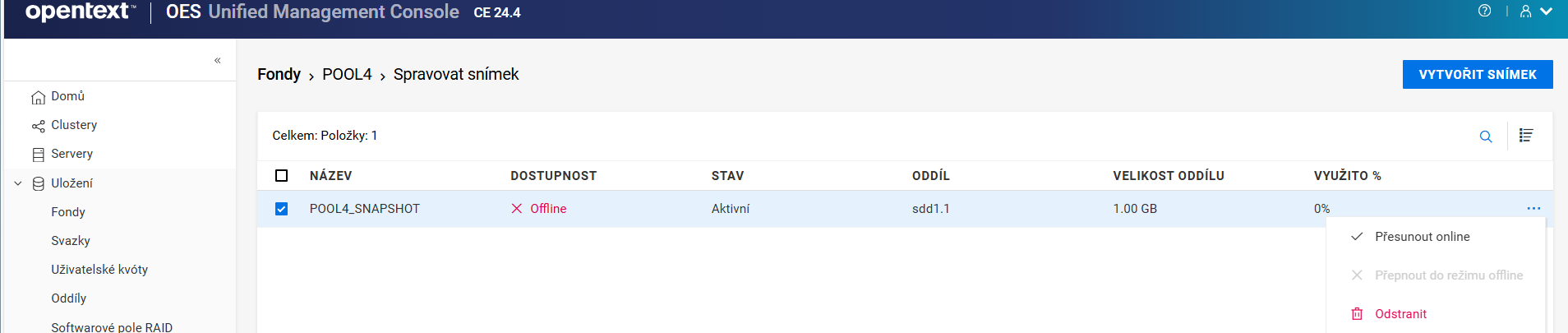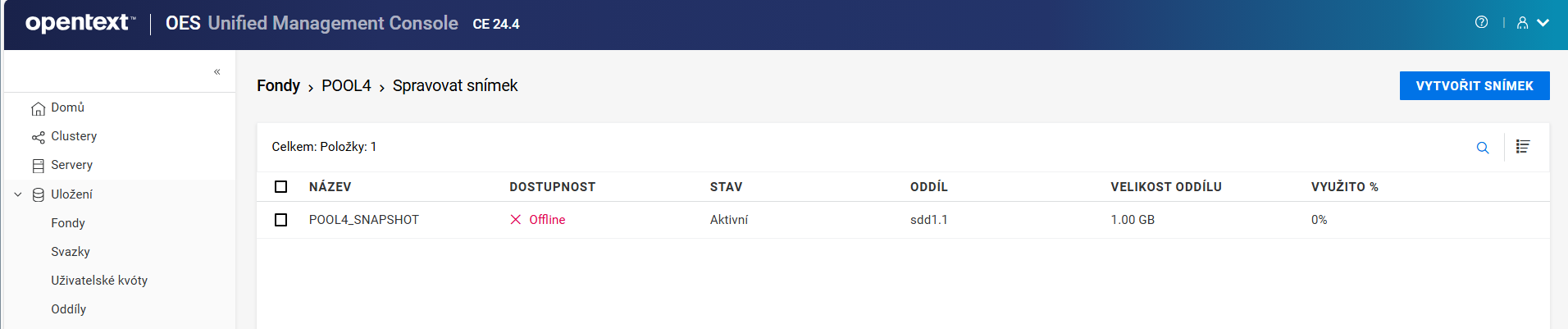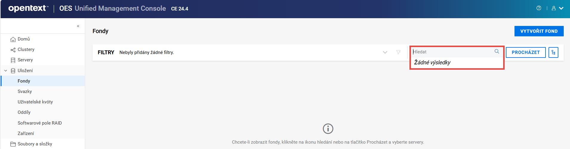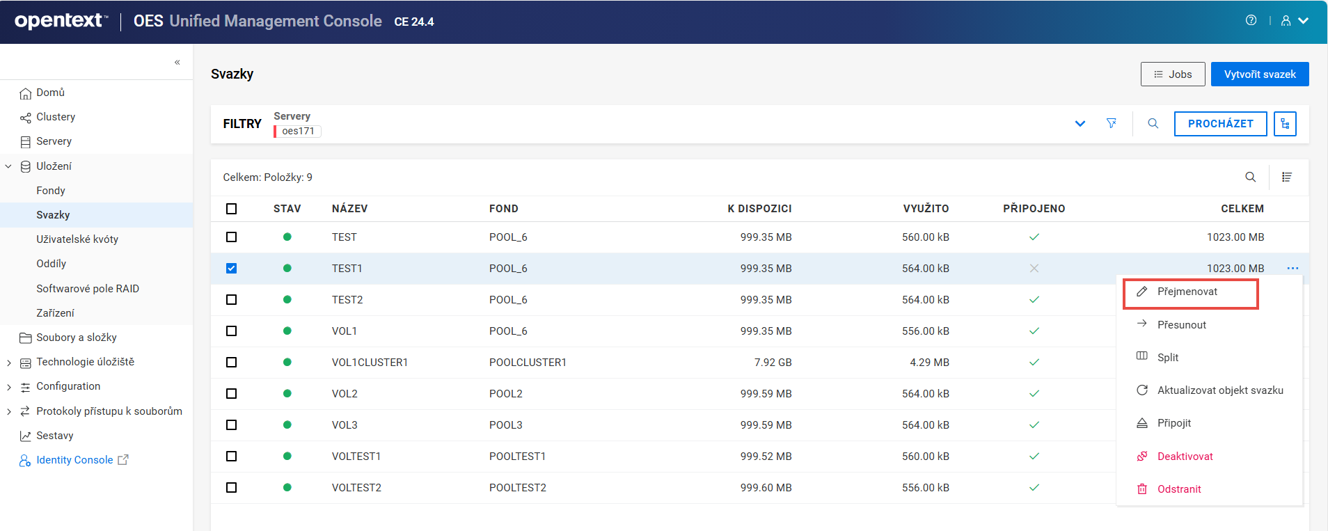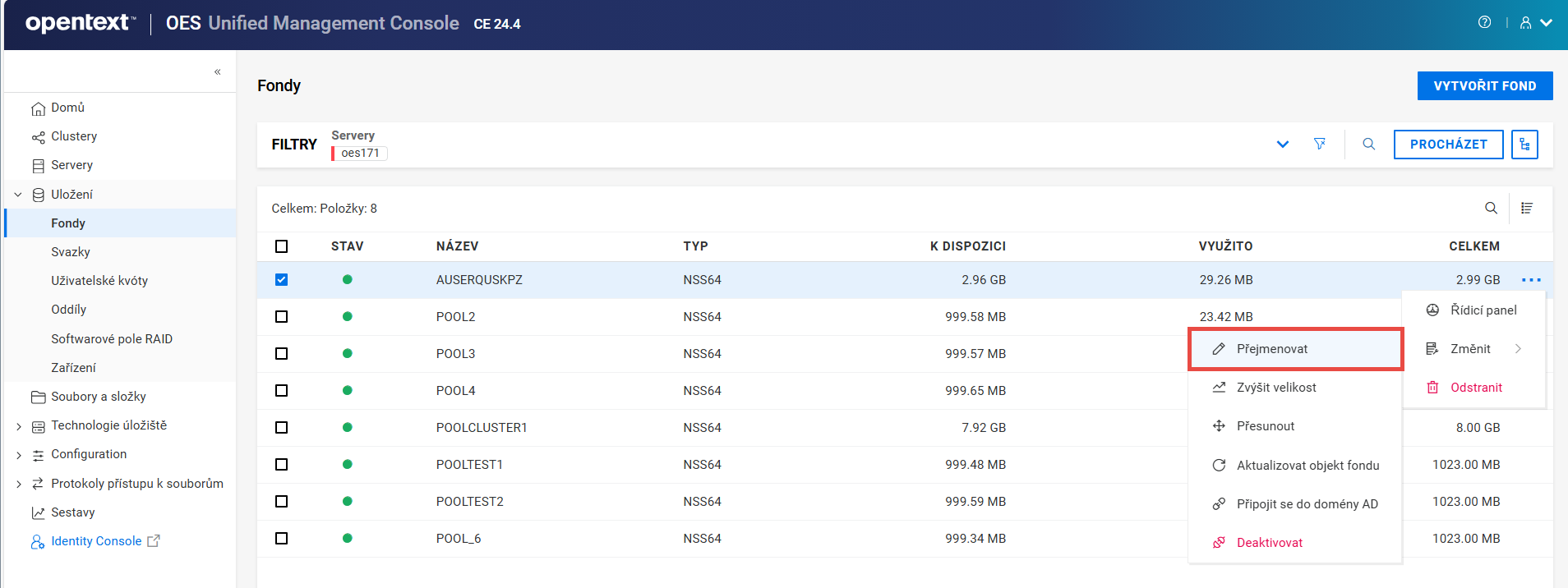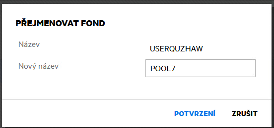 Přejmenování fondu nebo svazku clusteru může vykazovat nekonzistentní chování. Pokud po přejmenování nemůžete zobrazit fondy nebo svazky, otevřete konzoli UMC v jiném okně v anonymním režimu.