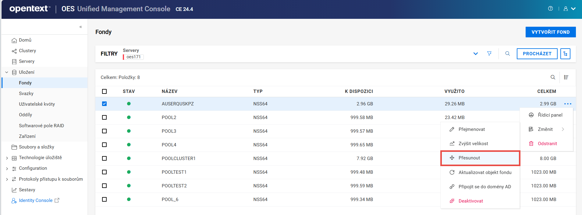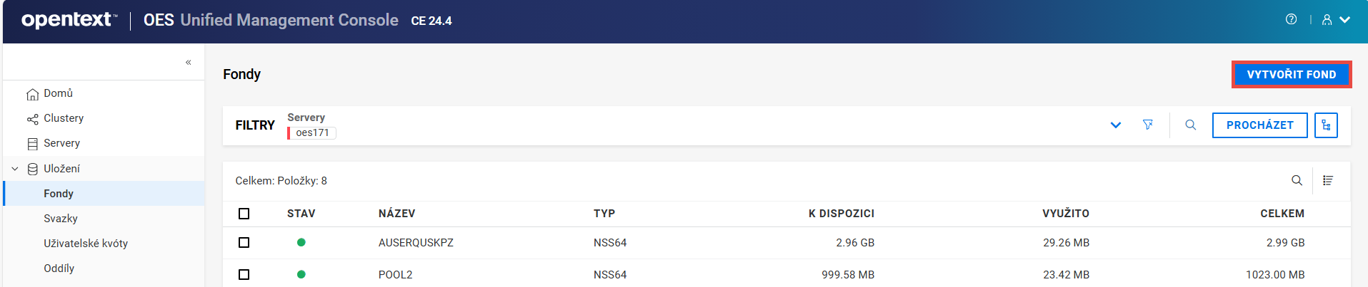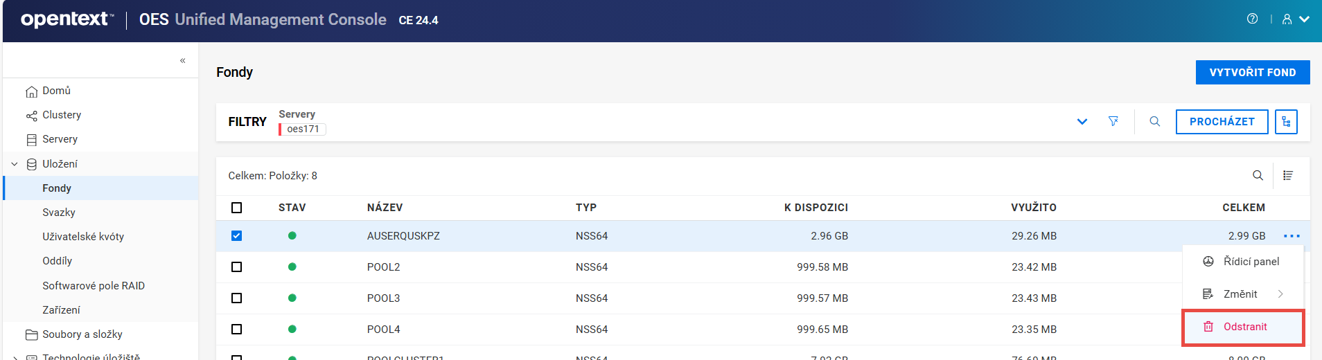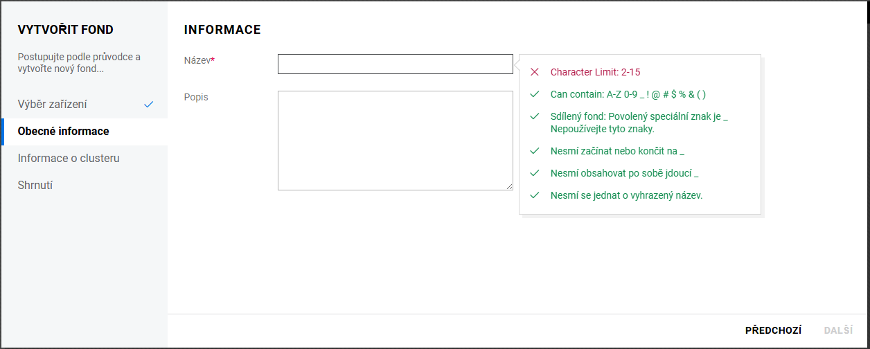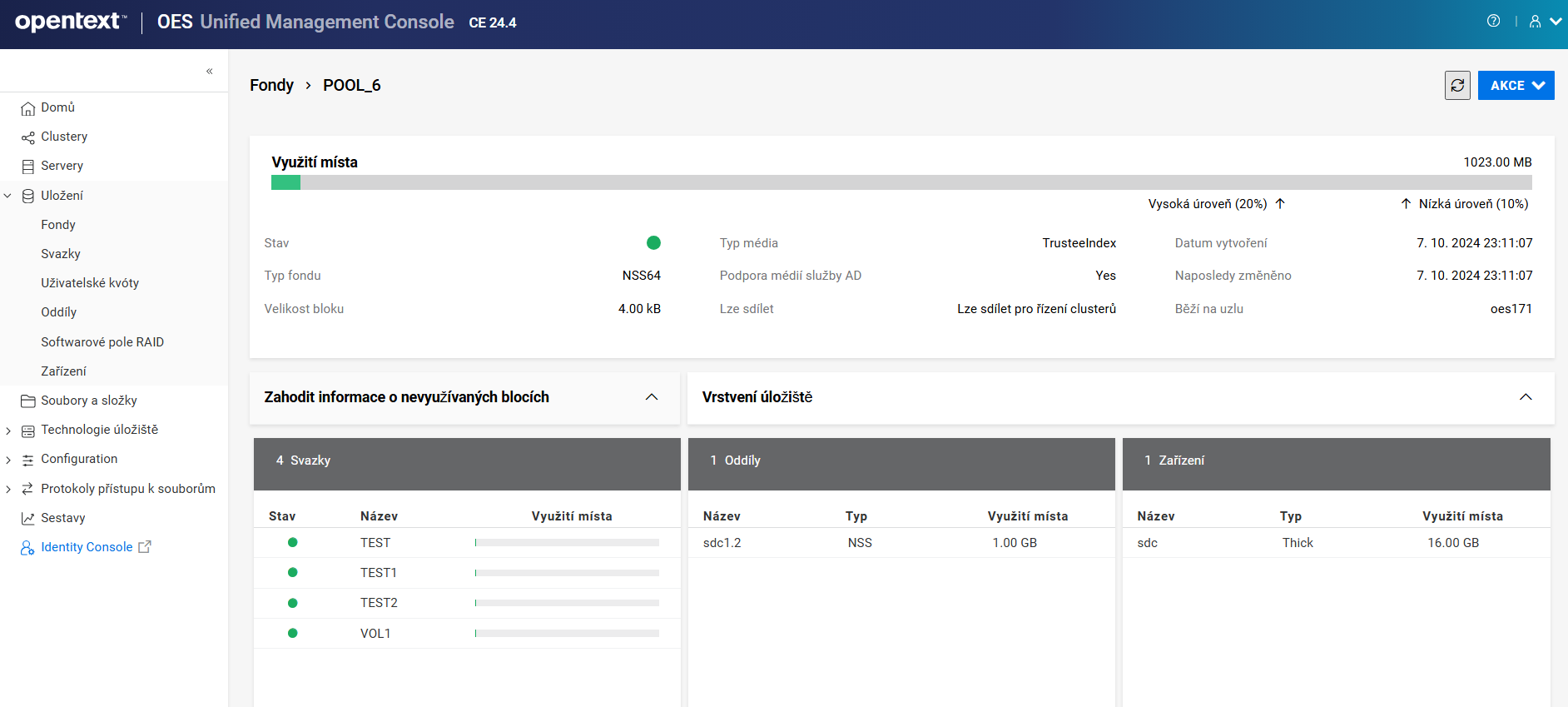 Přejmenování fondu nebo svazku clusteru může vykazovat nekonzistentní chování. Pokud po přejmenování nemůžete zobrazit fondy nebo svazky, otevřete konzoli UMC v jiném okně v anonymním režimu.
