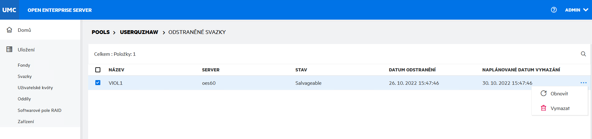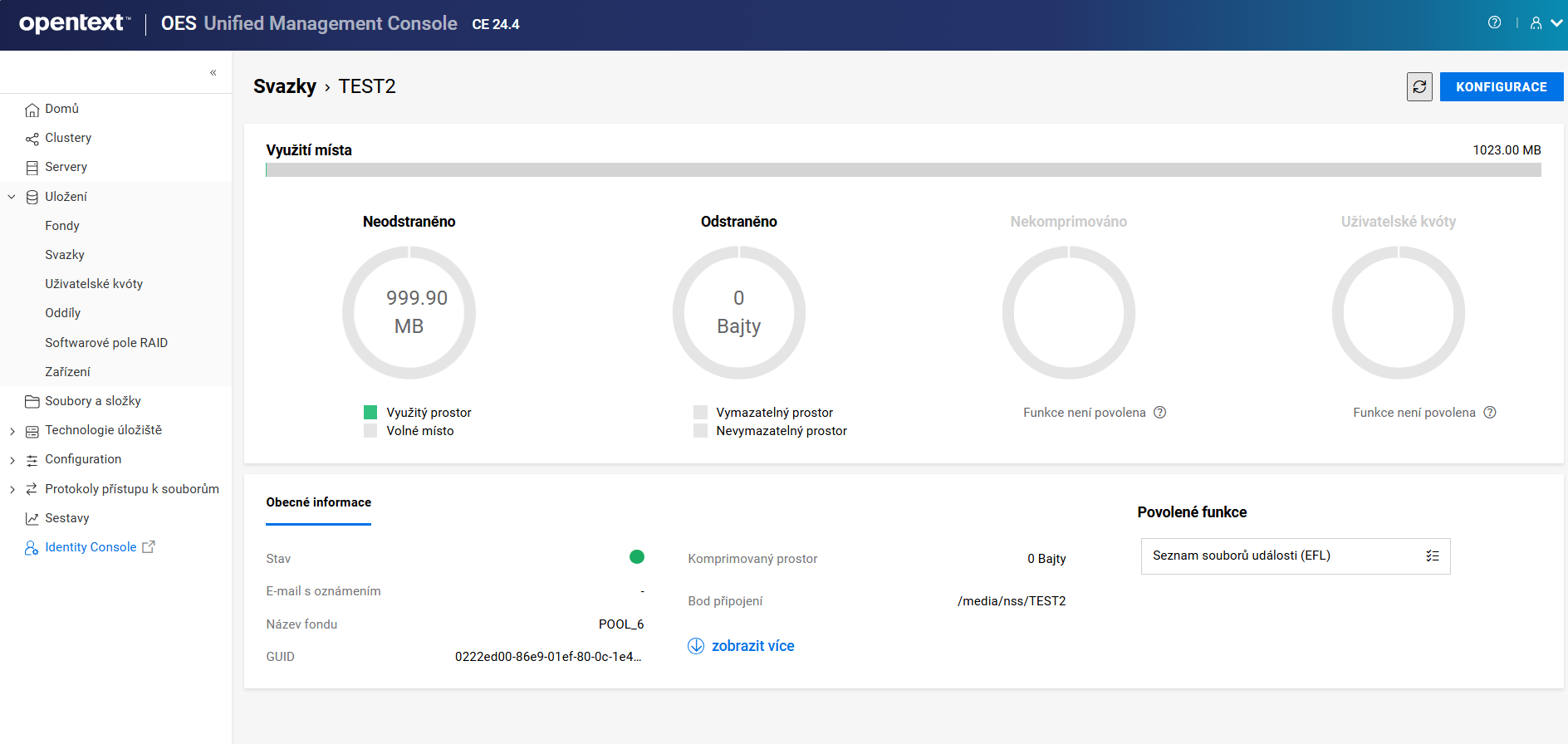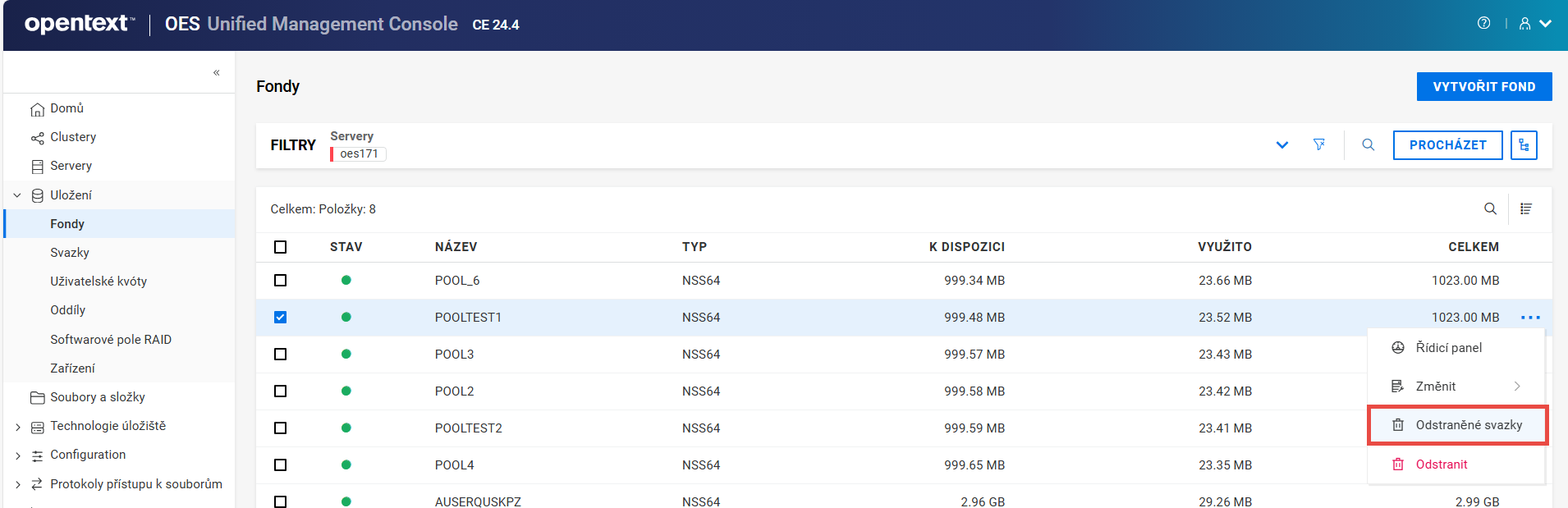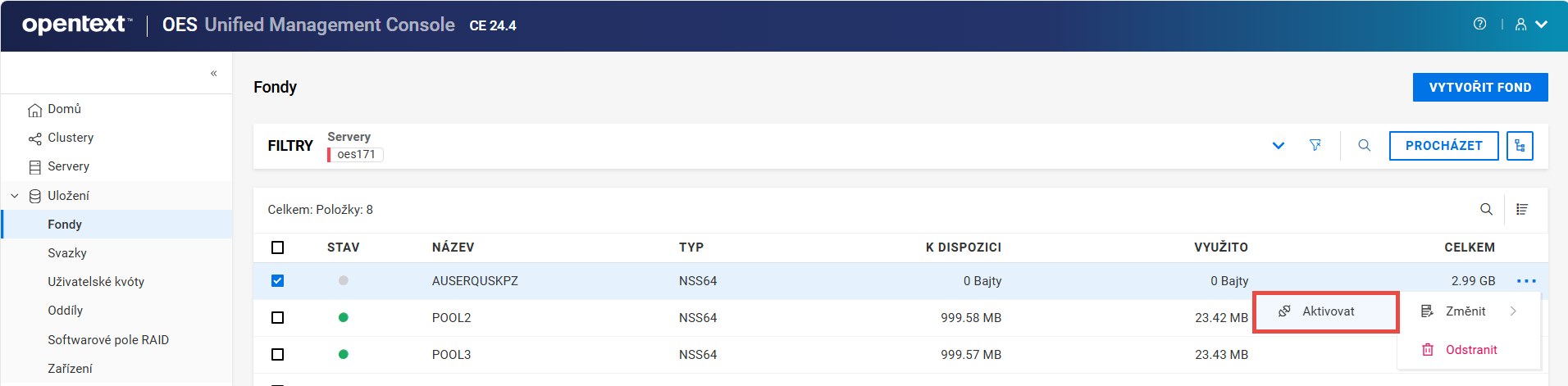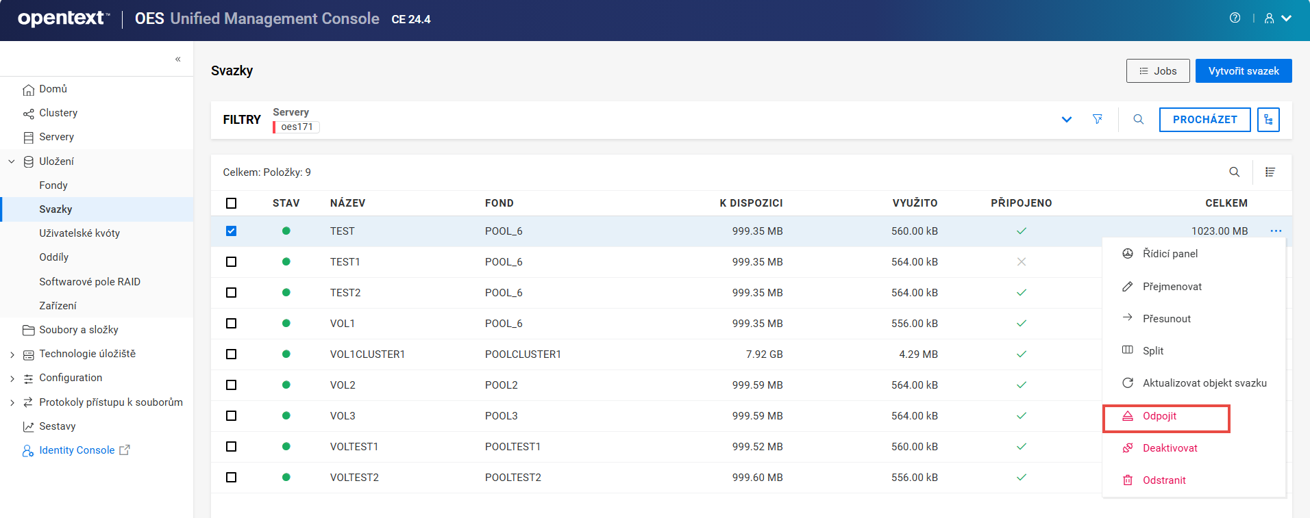 Přejmenování fondu nebo svazku clusteru může vykazovat nekonzistentní chování. Pokud po přejmenování nemůžete zobrazit fondy nebo svazky, otevřete konzoli UMC v jiném okně v anonymním režimu.