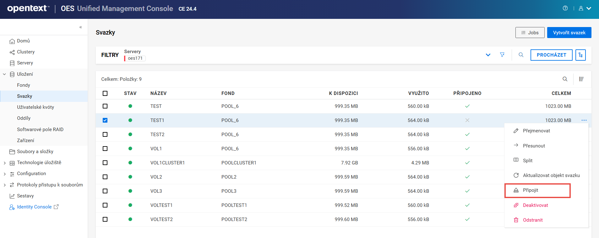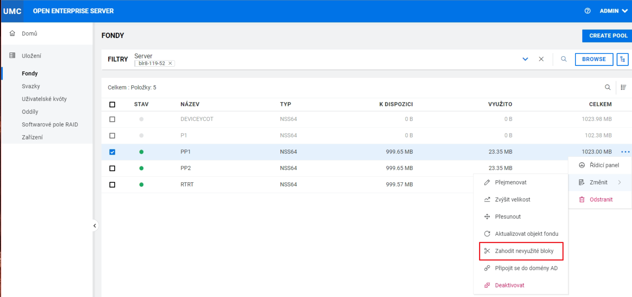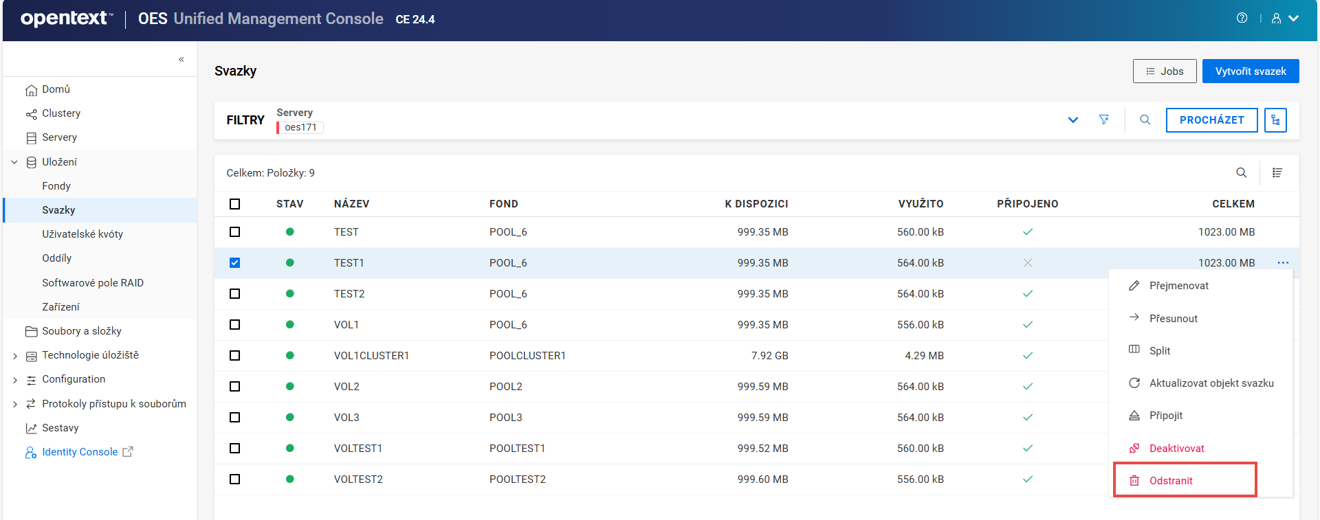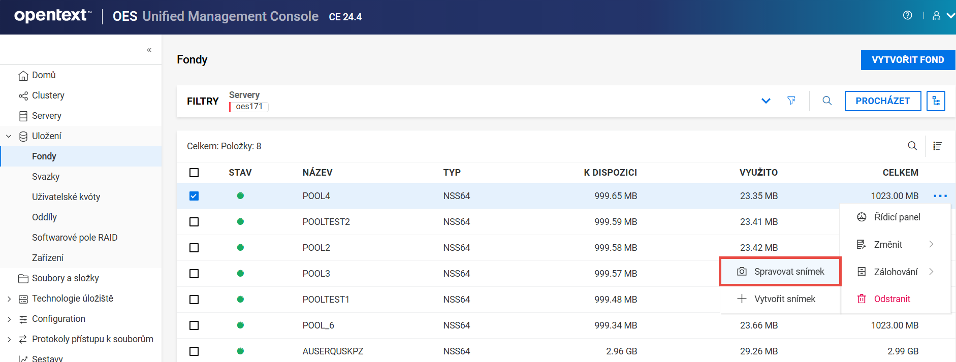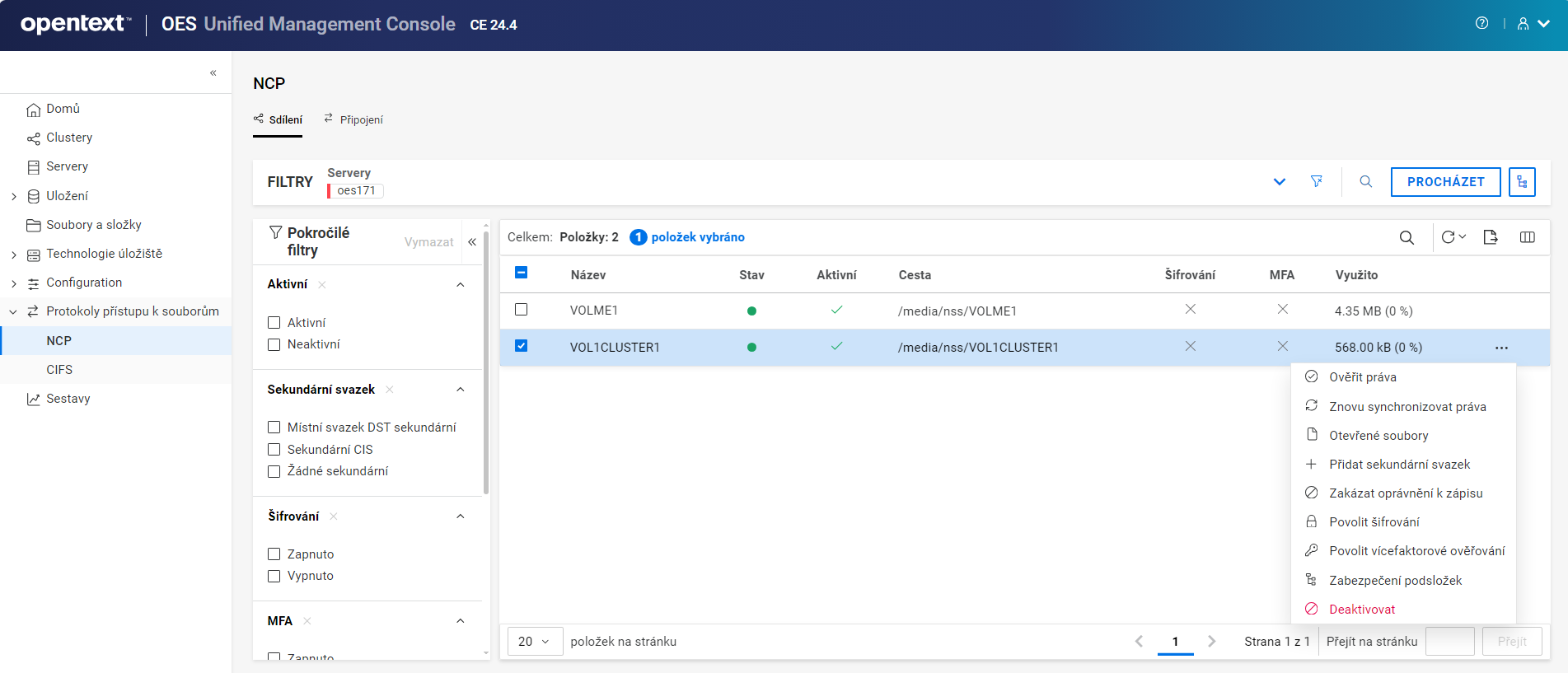 Přejmenování fondu nebo svazku clusteru může vykazovat nekonzistentní chování. Pokud po přejmenování nemůžete zobrazit fondy nebo svazky, otevřete konzoli UMC v jiném okně v anonymním režimu.