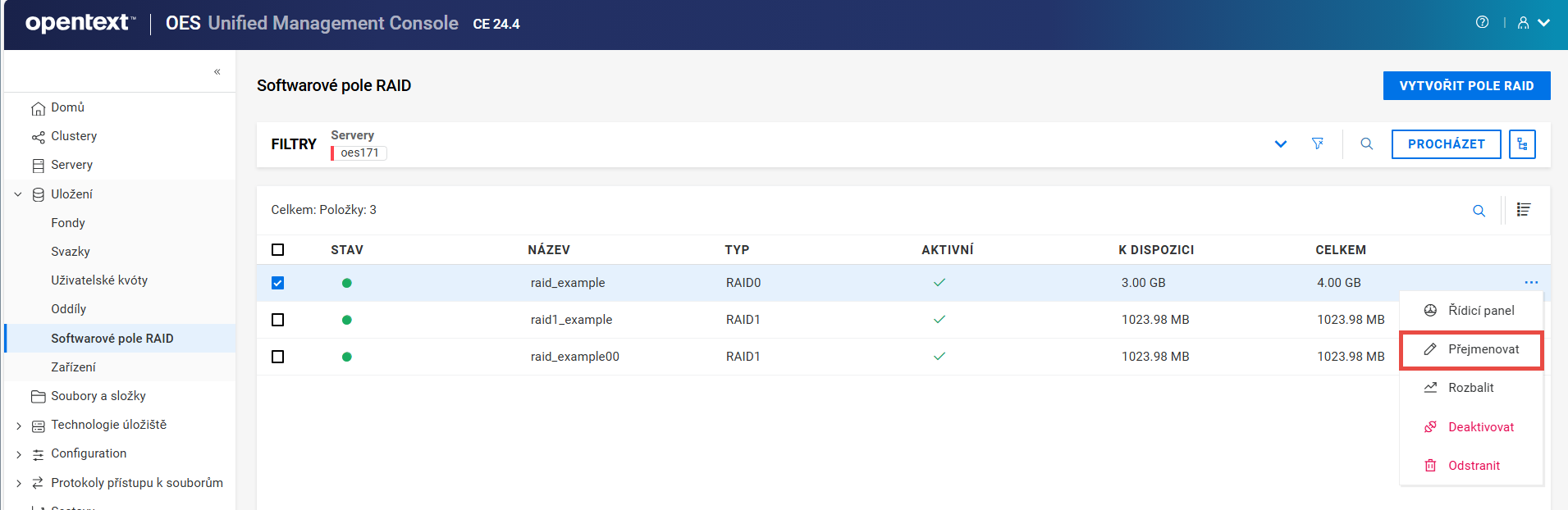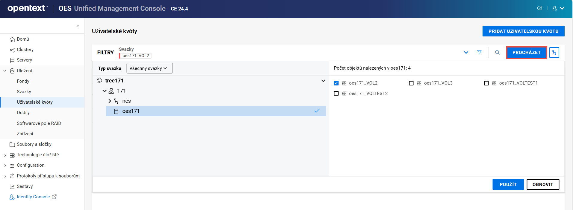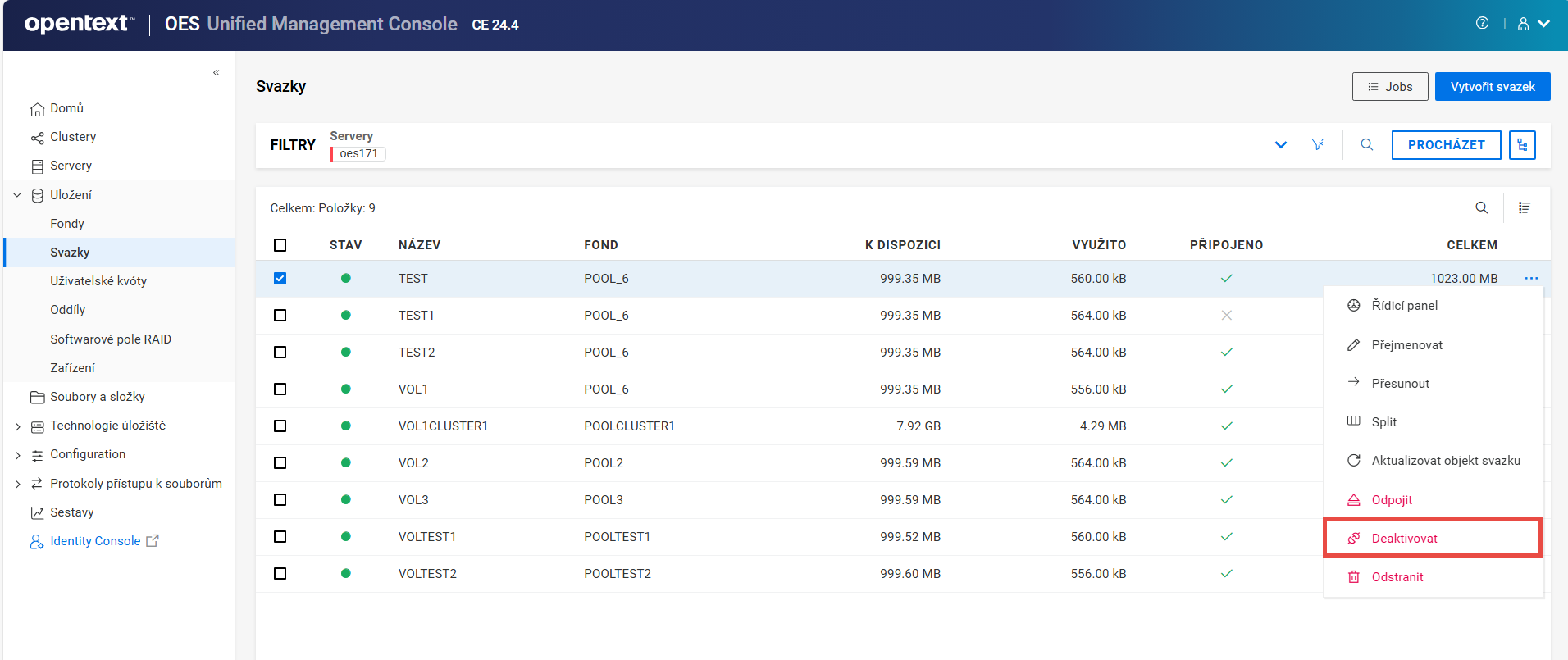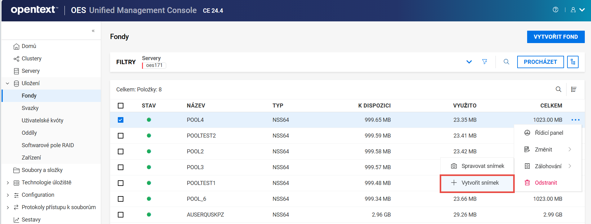 Přejmenování fondu nebo svazku clusteru může vykazovat nekonzistentní chování. Pokud po přejmenování nemůžete zobrazit fondy nebo svazky, otevřete konzoli UMC v jiném okně v anonymním režimu.