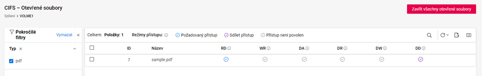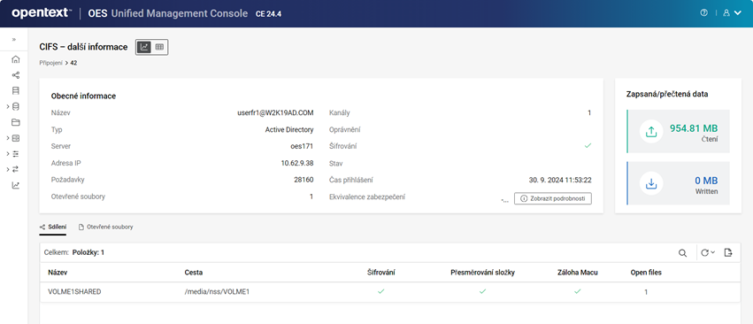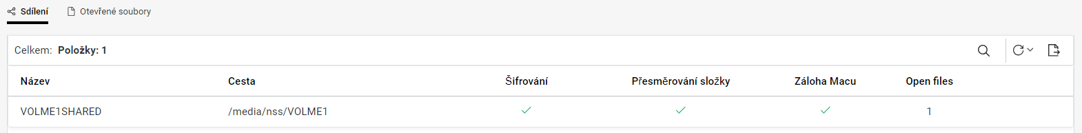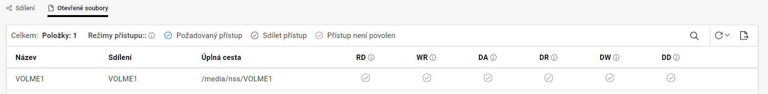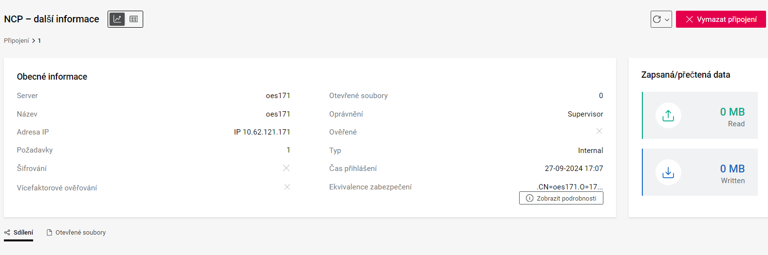 Zobrazení tabulky: Seznam připojení NCP a CIFS