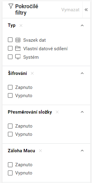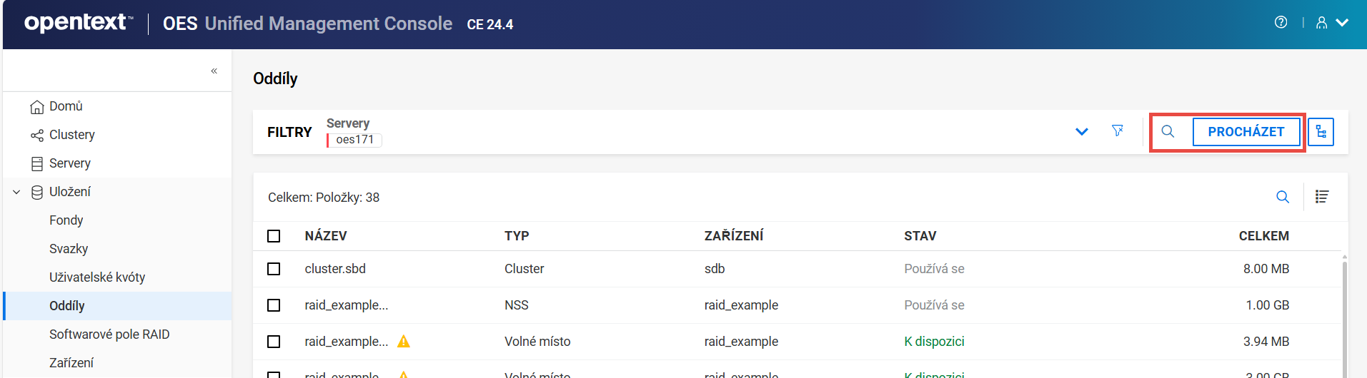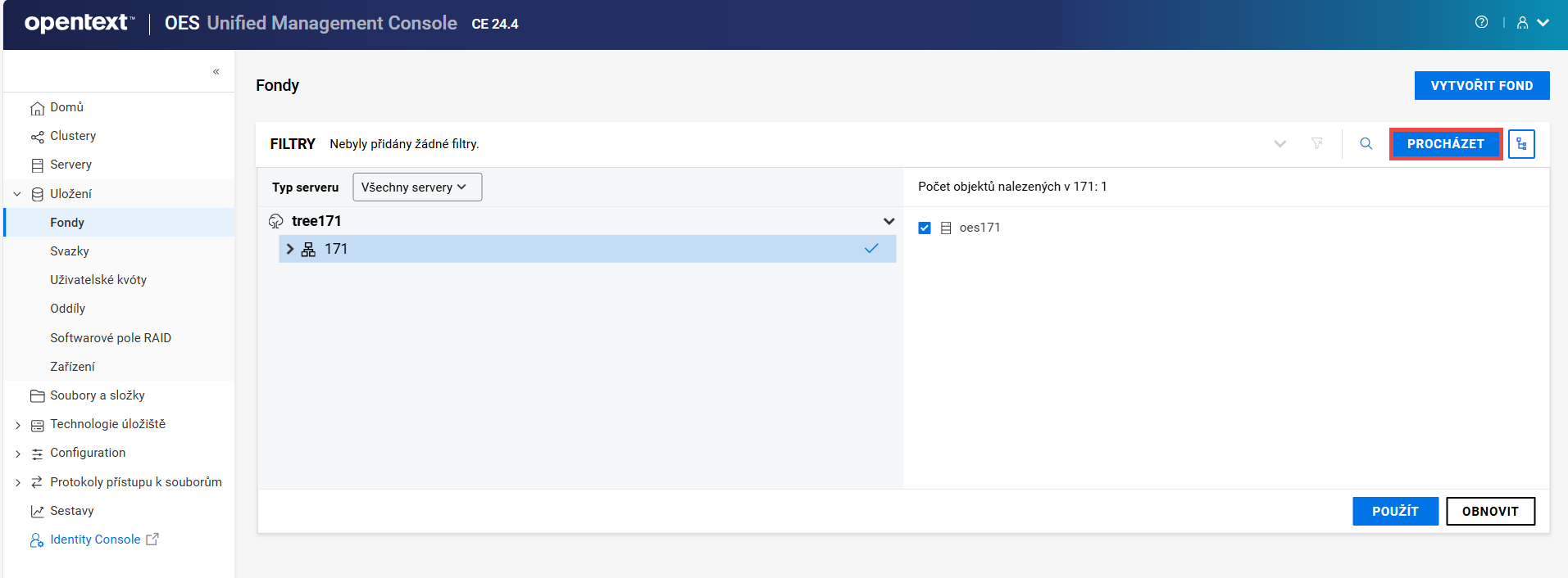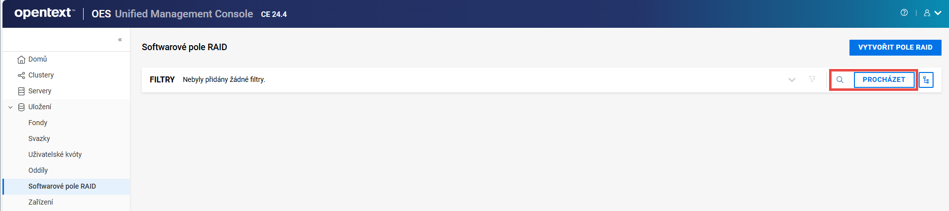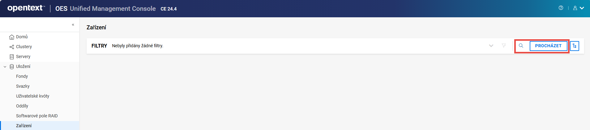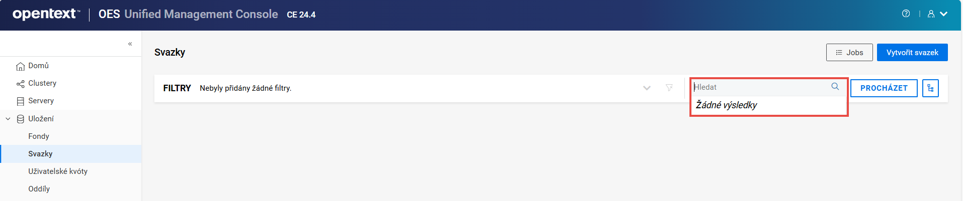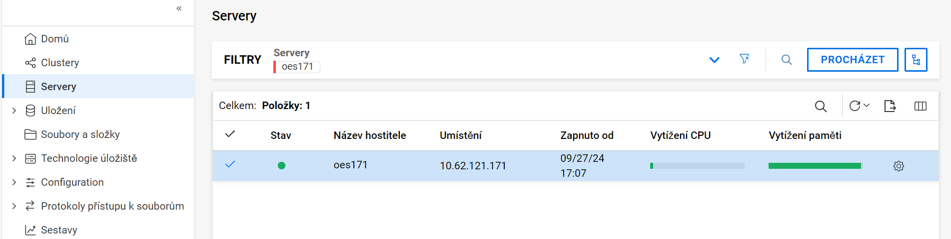 Při prvním přihlášení je stránka s výpisem clusterů prázdná. Během procházení se však díky vylepšené a kontextové funkci filtru zobrazují pouze objekty clusteru. Vybrané clustery jsou uvedeny na stránce Clustery.