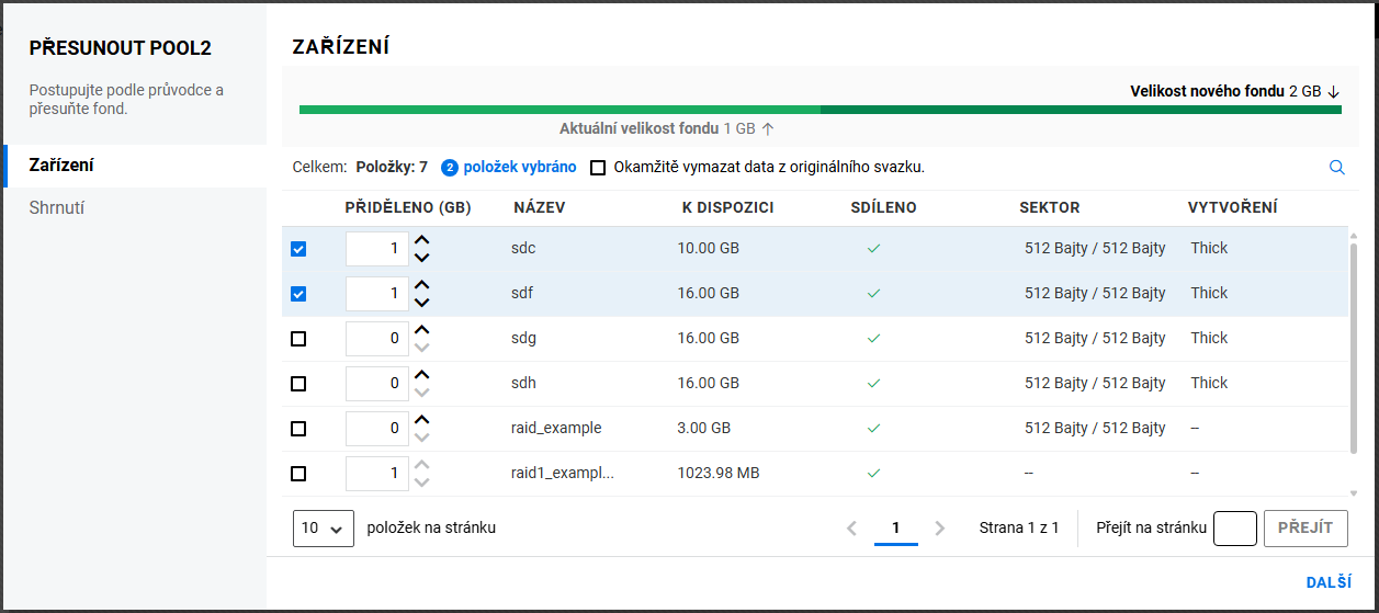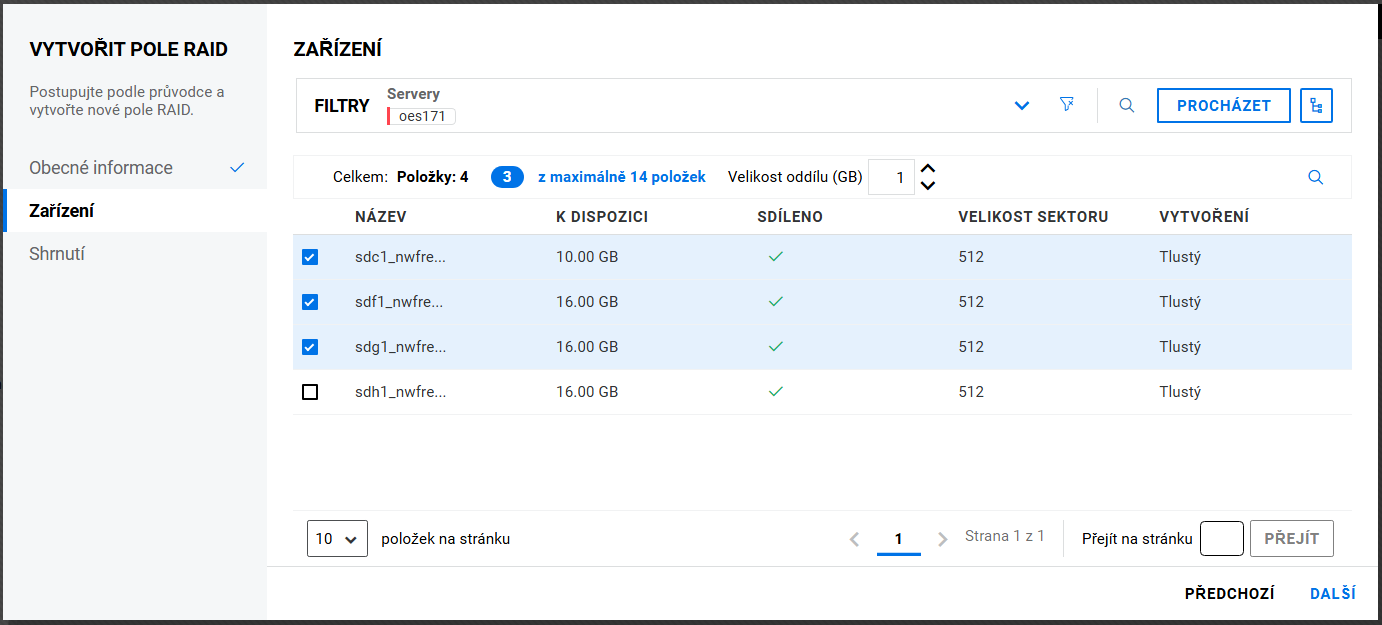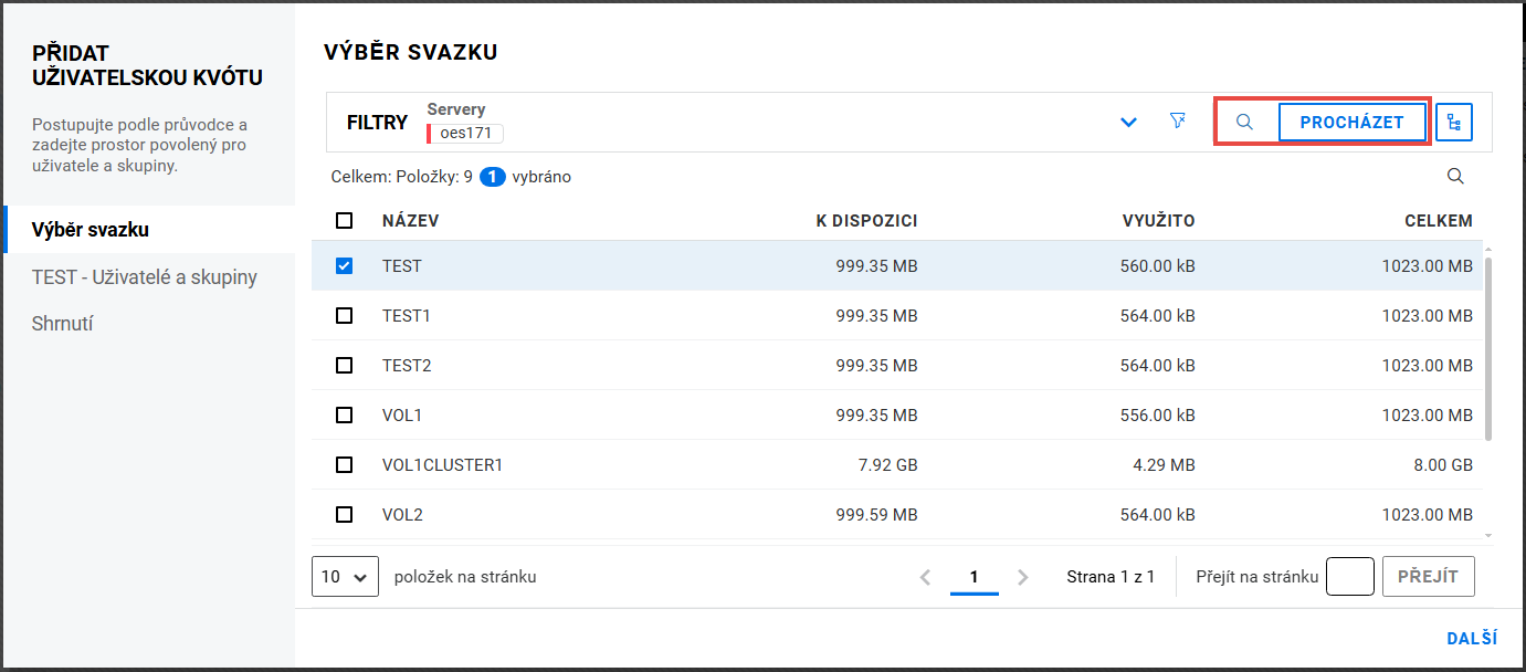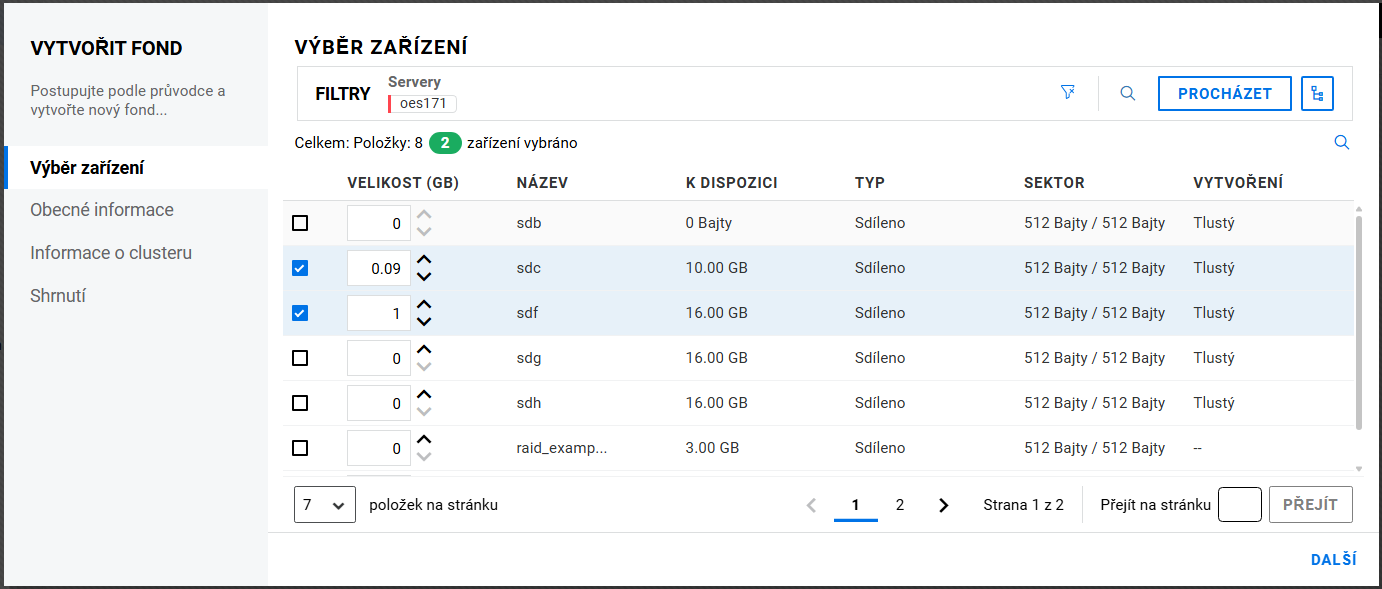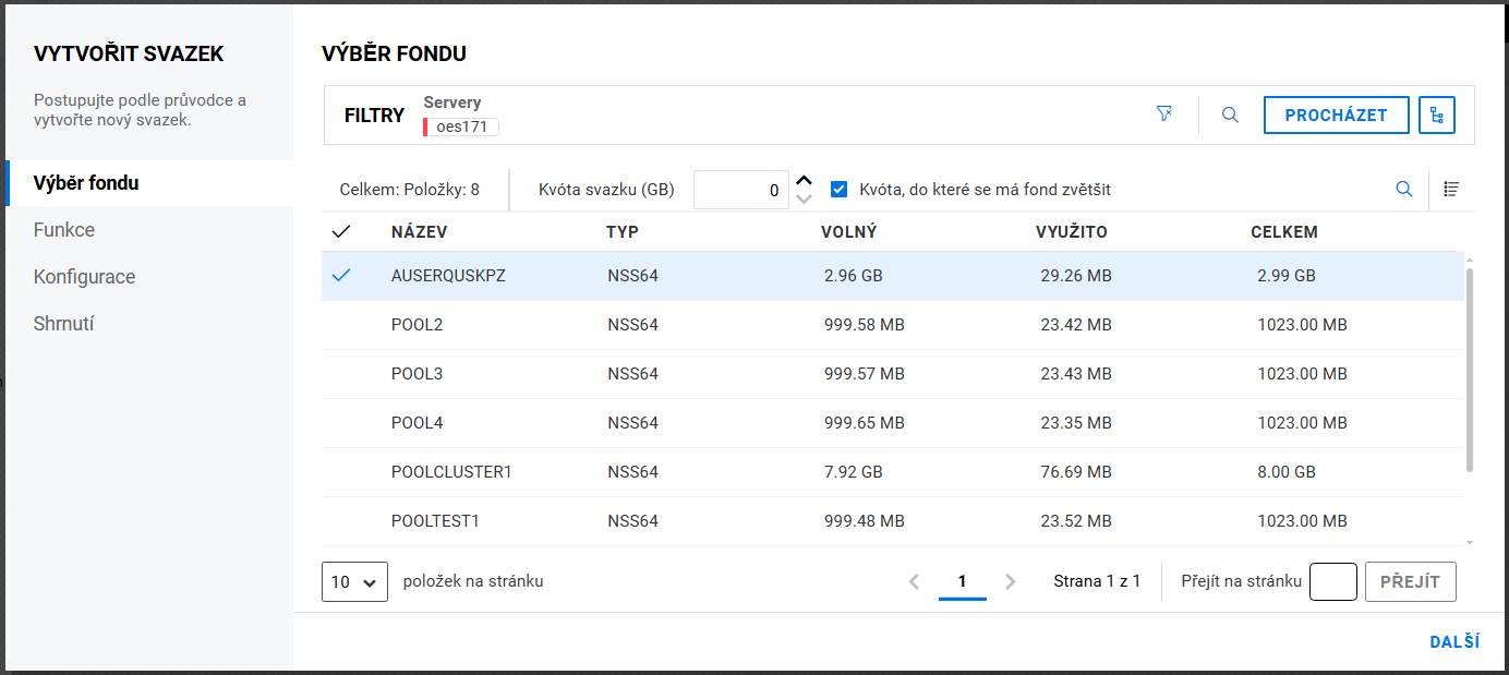 Na stránce Kontejnery projděte server, vyberte kontejnery a klikněte na tlačítko Další.