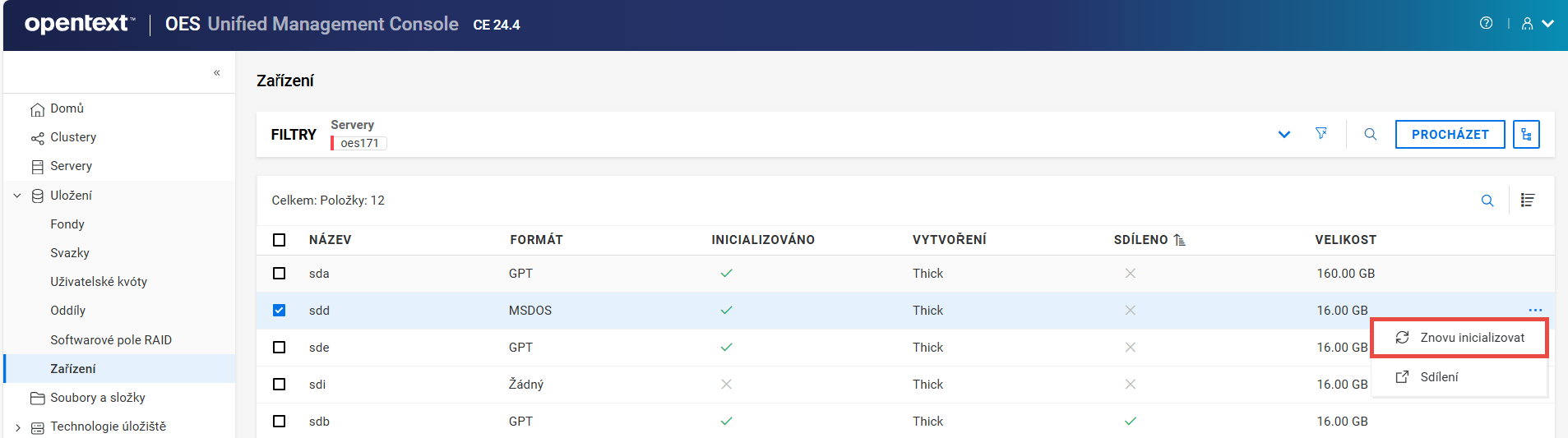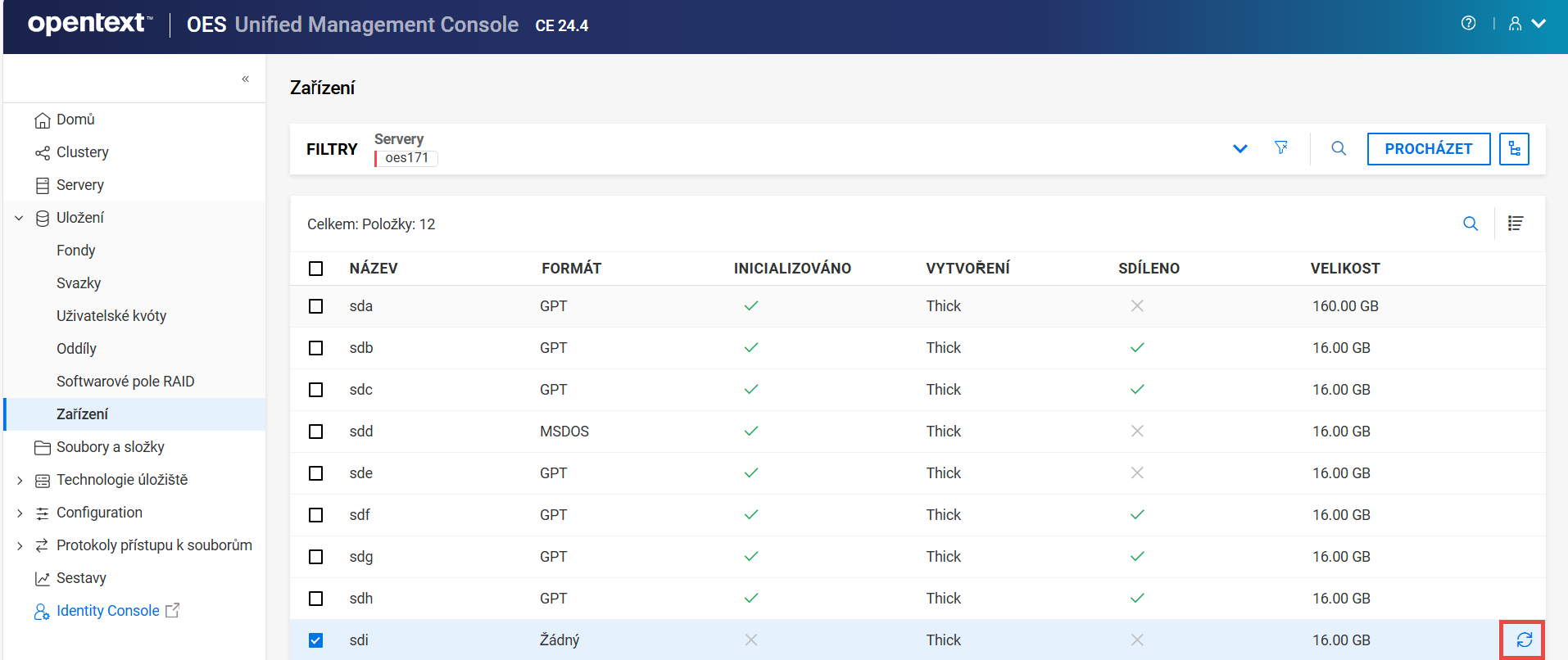 Po uvedení prostředku do režimu online nebo offline je nutné ručně obnovit tabulku prostředků, aby se zobrazil aktualizovaný stav.