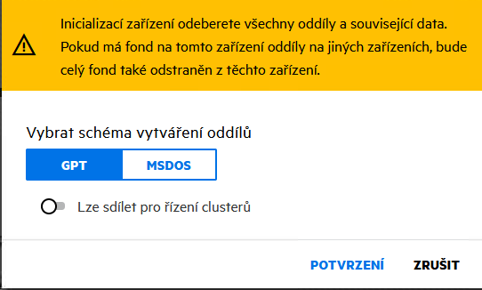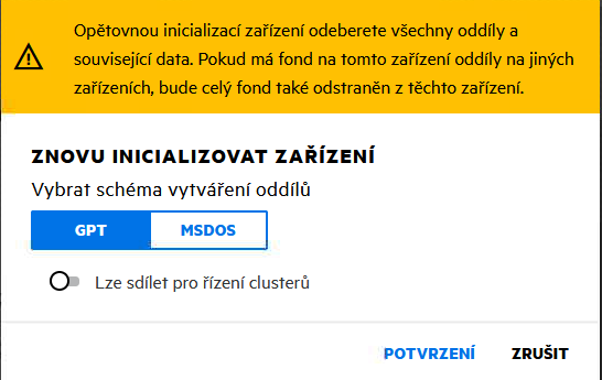 Vytvoření fondu na sdíleném zařízení není povoleno, pokud není nastavení nakonfigurováno pro cluster.
