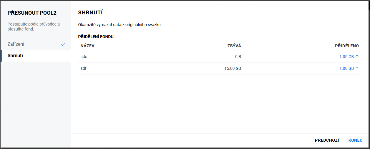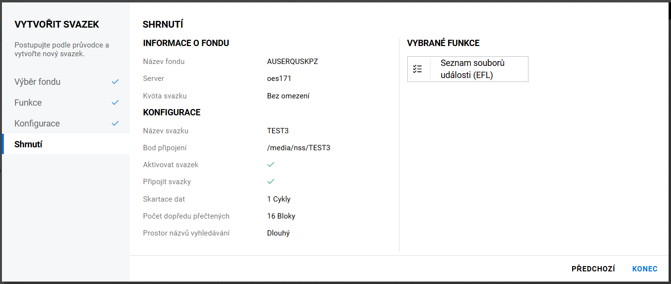 Na stránce Shrnutí zkontrolujte kontejnery a servery a potom klikněte na tlačítko Dokončit.
