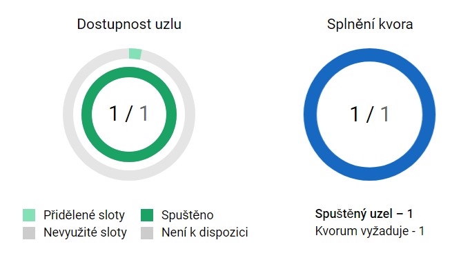 Splnění kvora:: Zobrazuje počet uzlů potřebných k dosažení kvora a počet spuštěných uzlů.