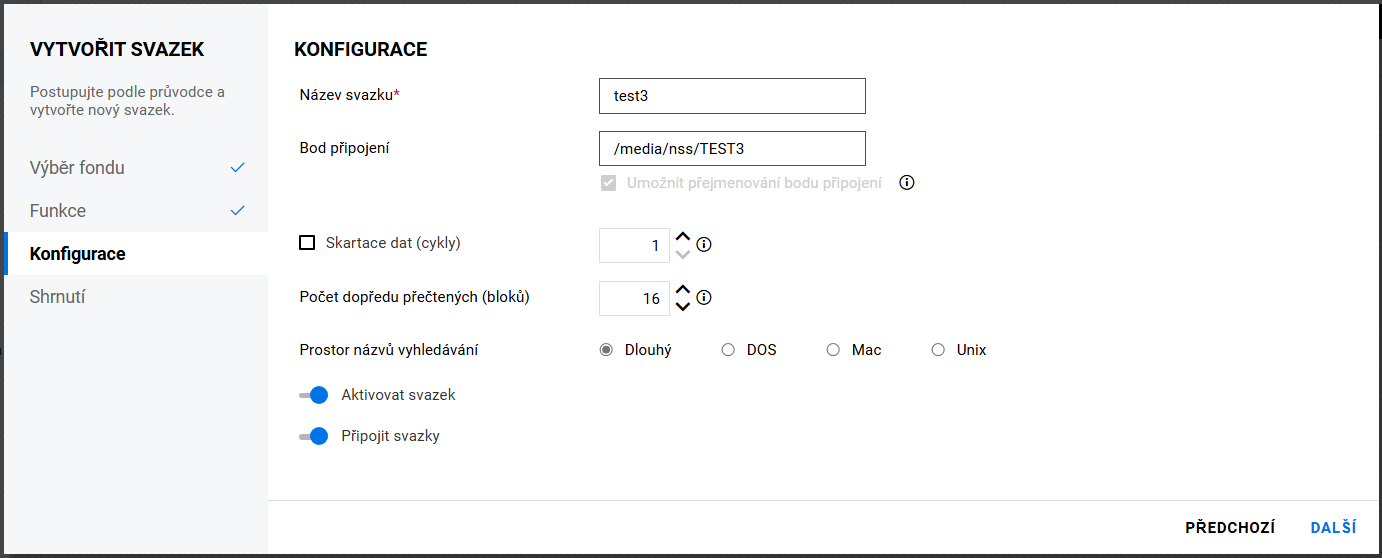Před vytvořením svazku proveďte akci /PoolMediaUpgrade=pool_name /MediaType=AES z konzole NSS.