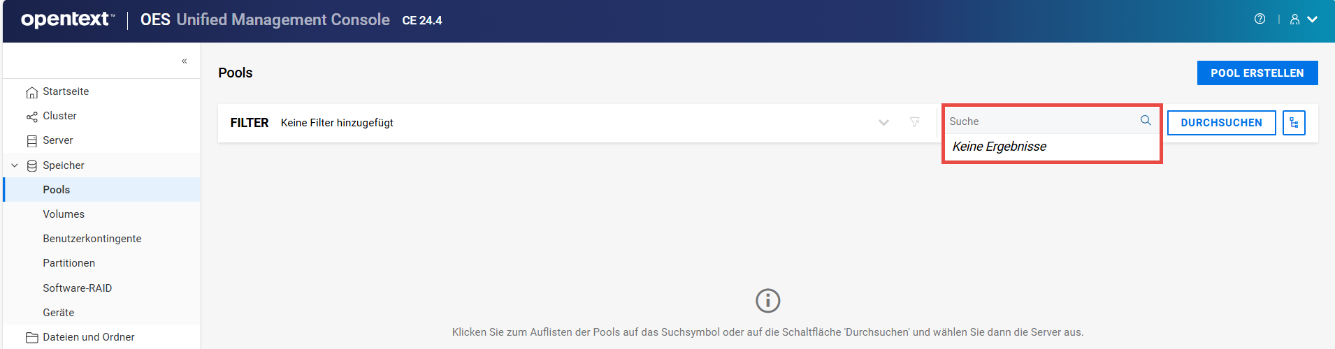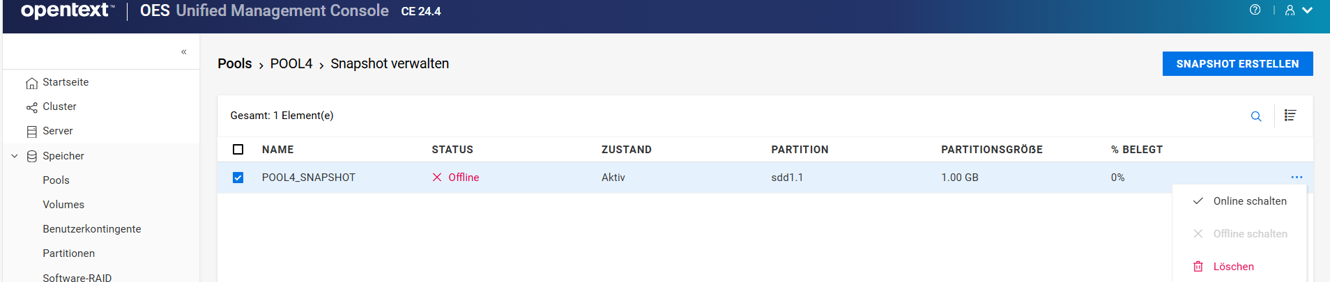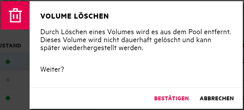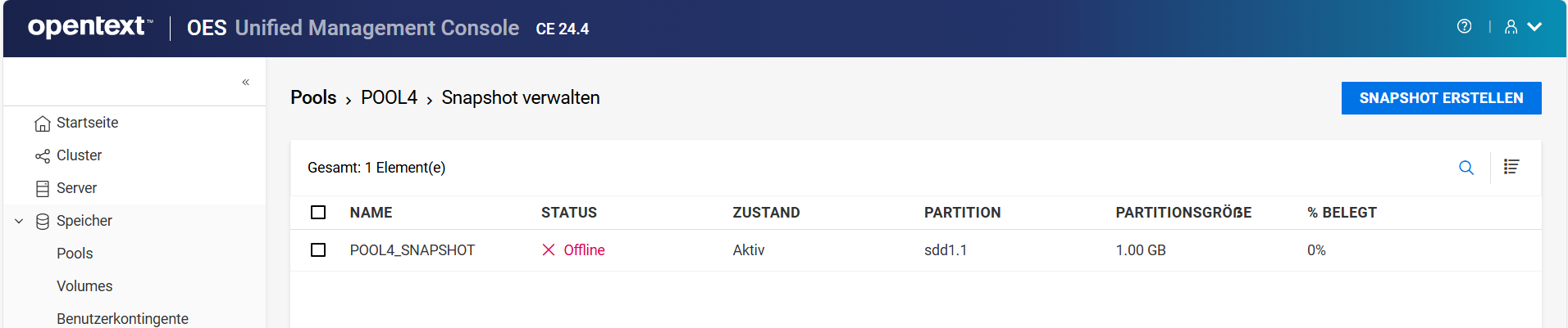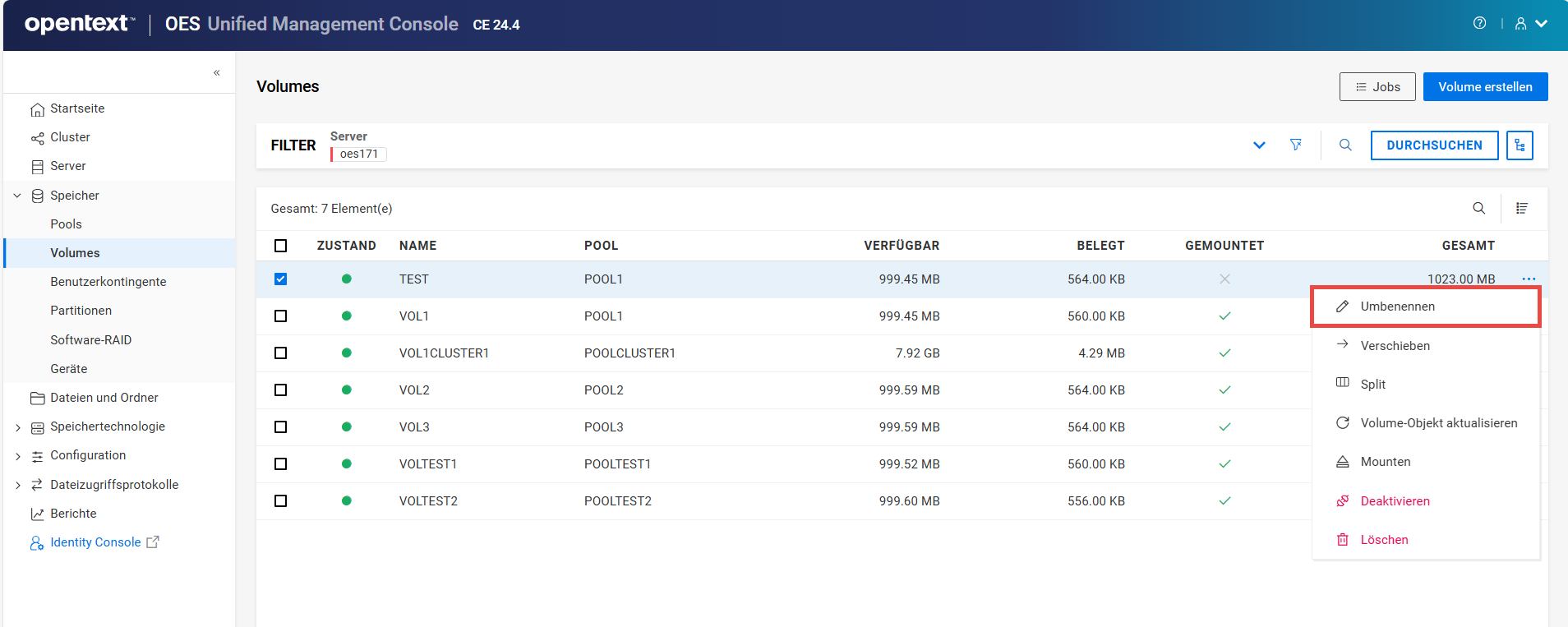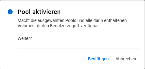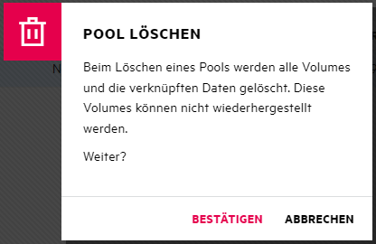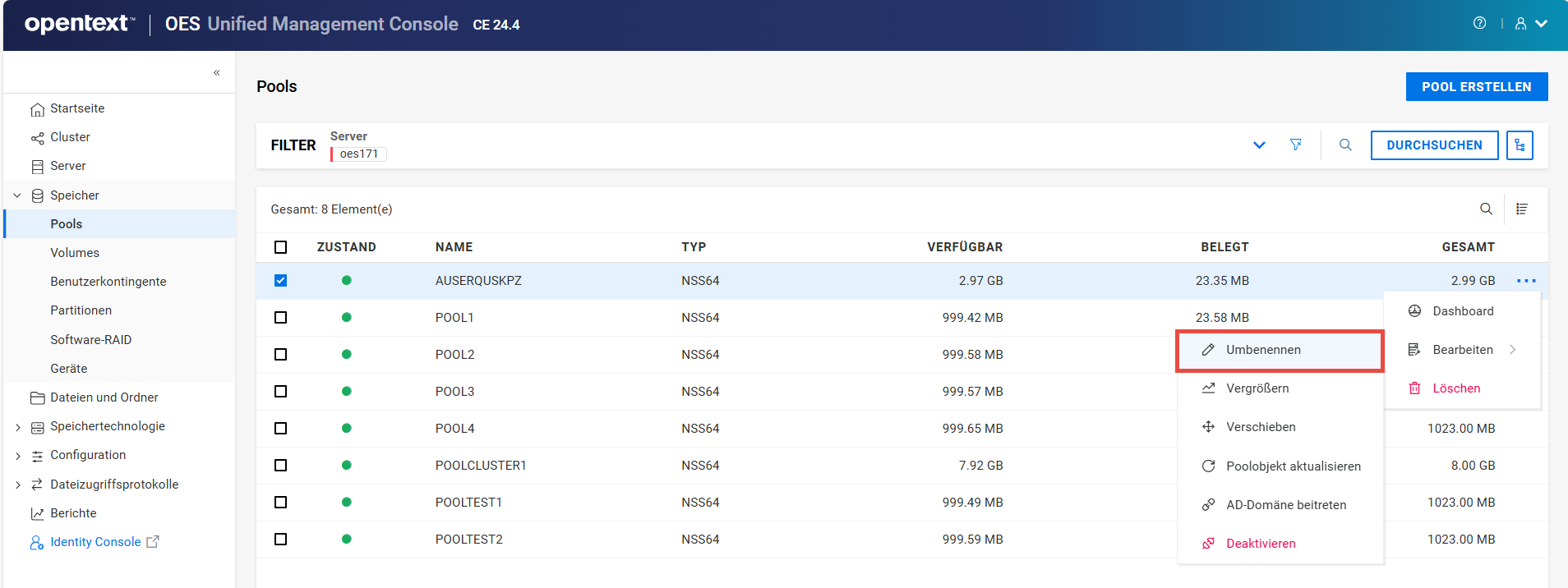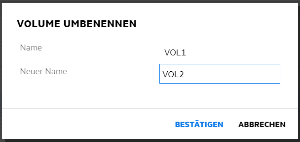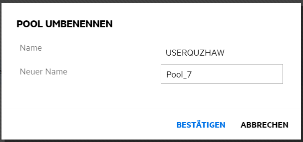 Das Umbenennen eines Clusterpools oder Volumes kann inkonsistentes Verhalten aufweisen. Wenn Sie nach dem Umbenennen keine Pools oder Volumes auflisten können, öffnen Sie UMC in einem anderen Fenster im Inkognito-Modus.