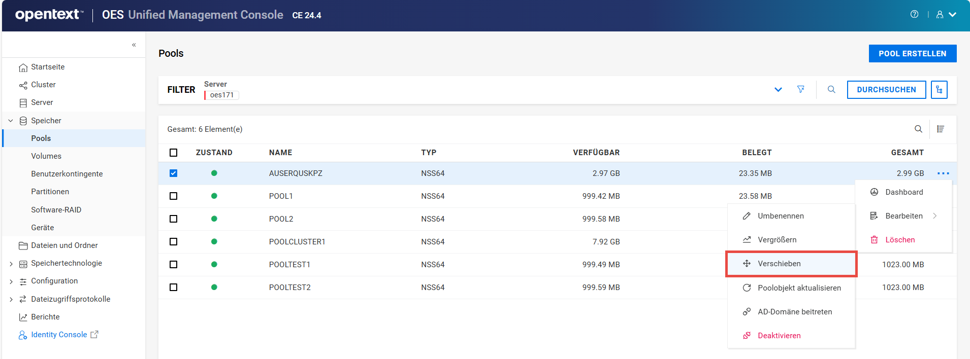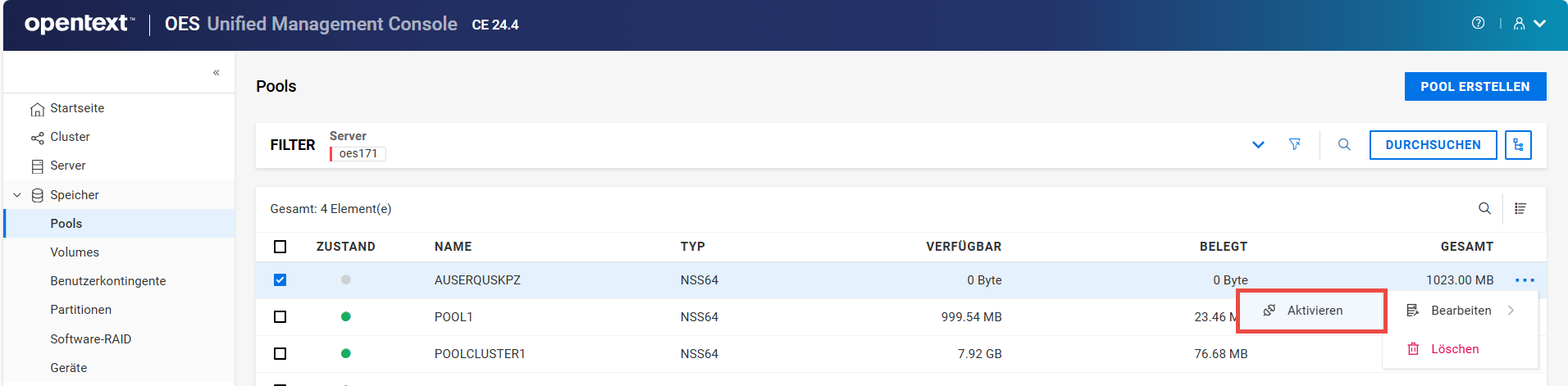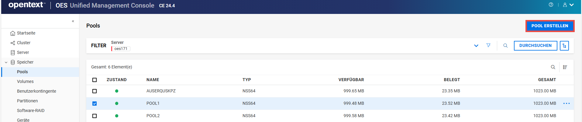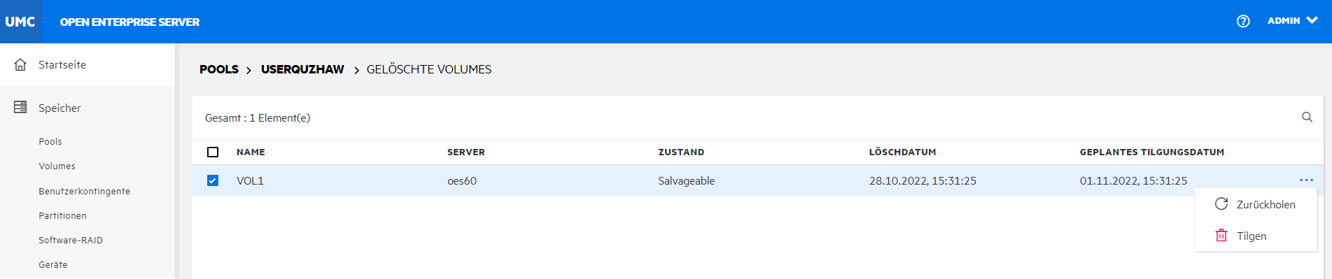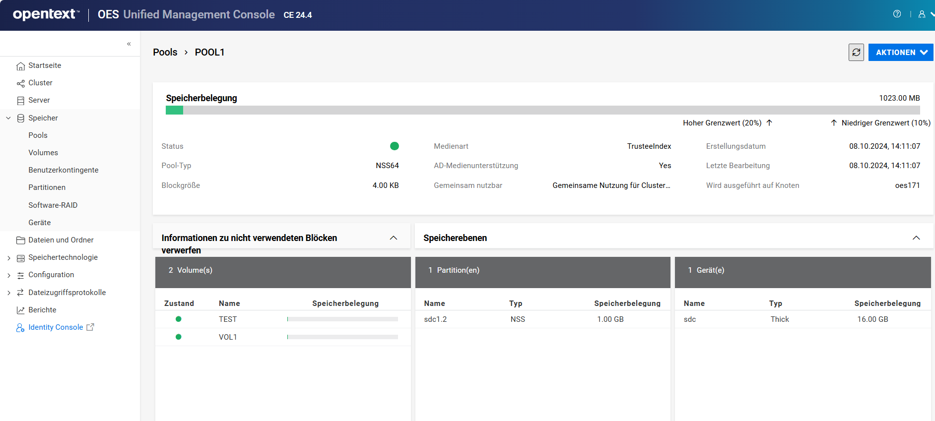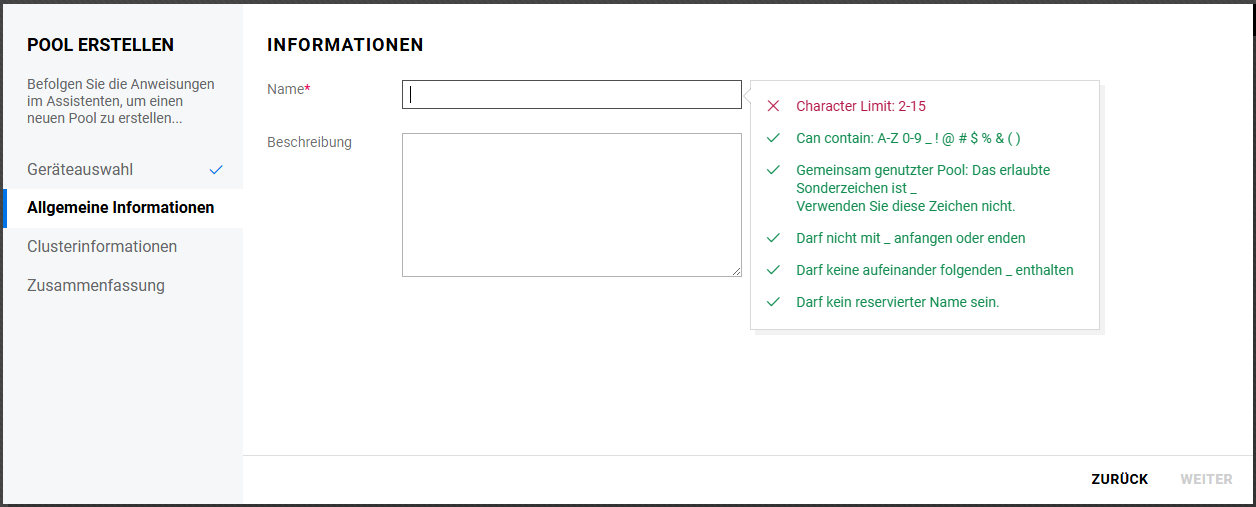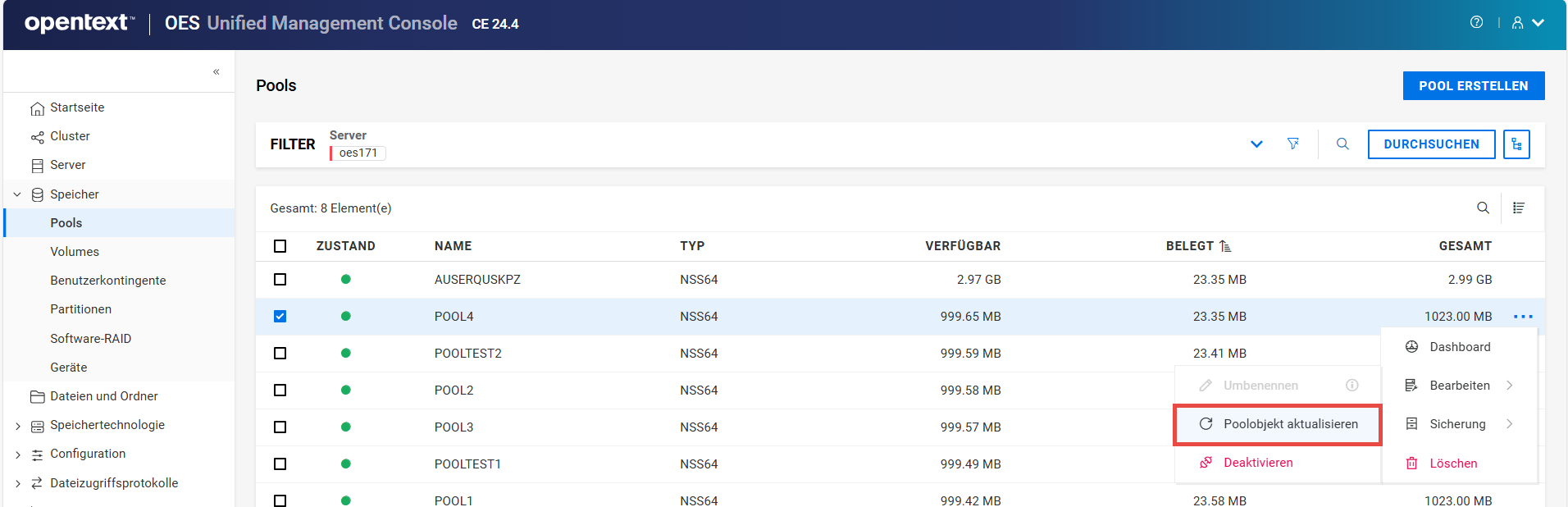 Das Umbenennen eines Clusterpools oder Volumes kann inkonsistentes Verhalten aufweisen. Wenn Sie nach dem Umbenennen keine Pools oder Volumes auflisten können, öffnen Sie UMC in einem anderen Fenster im Inkognito-Modus.