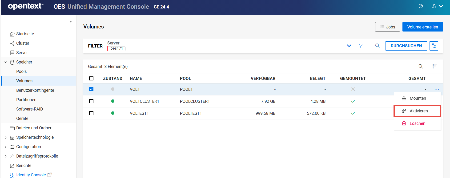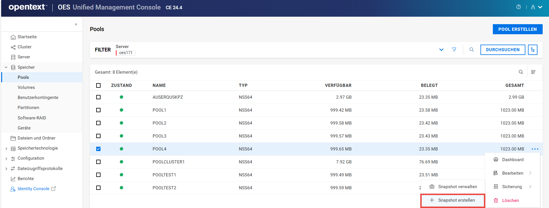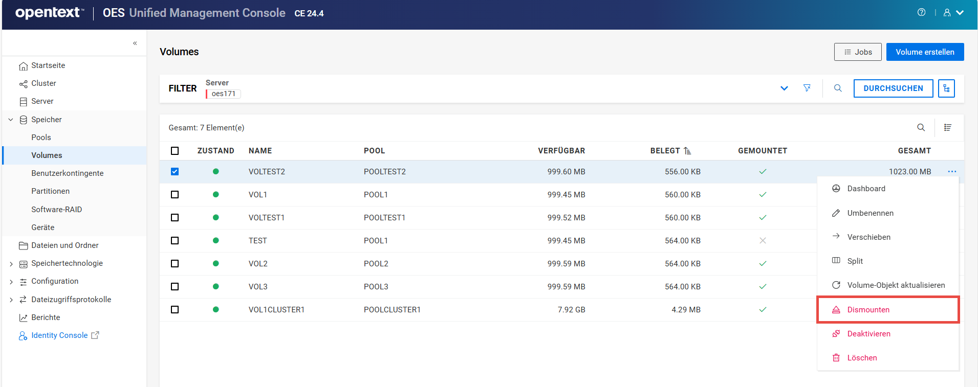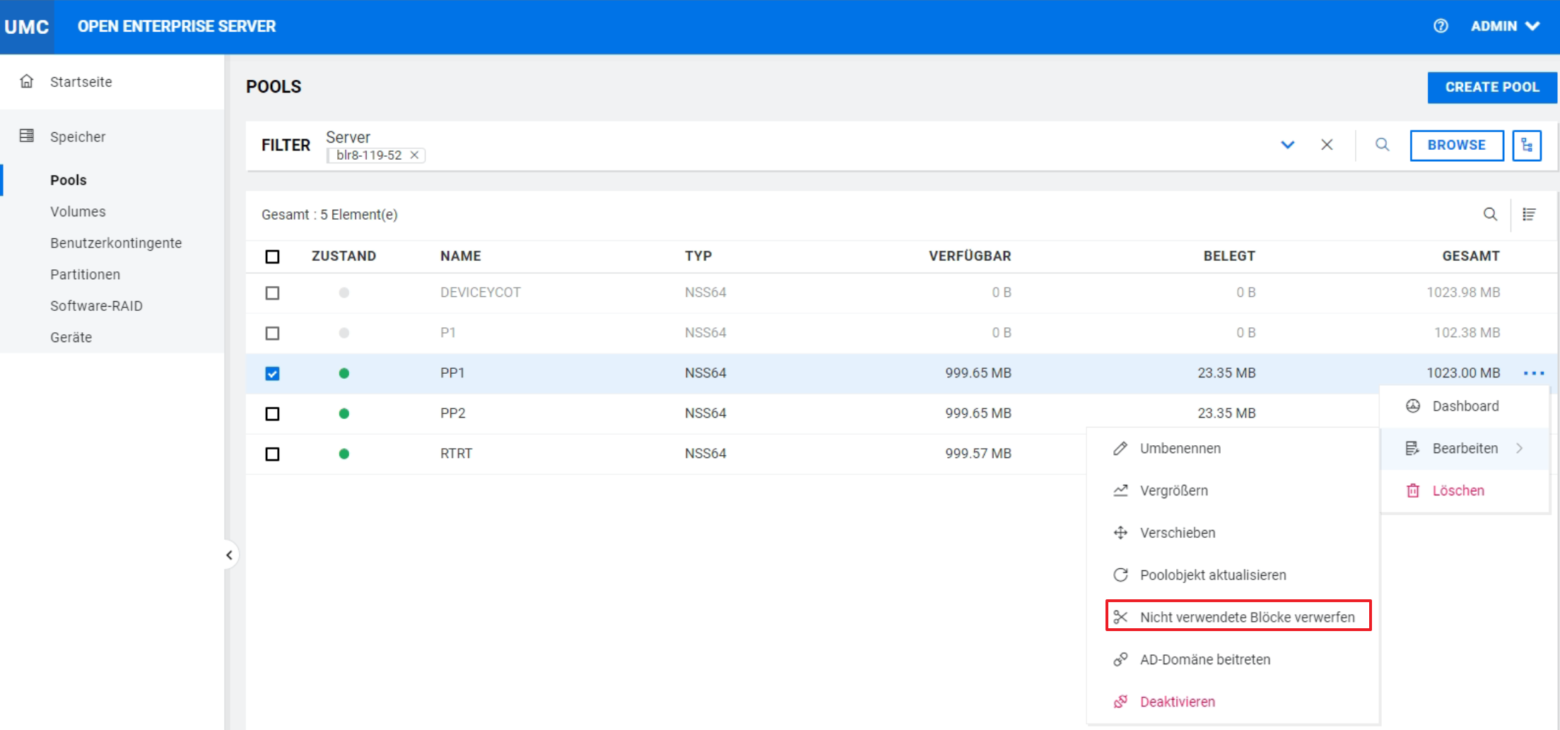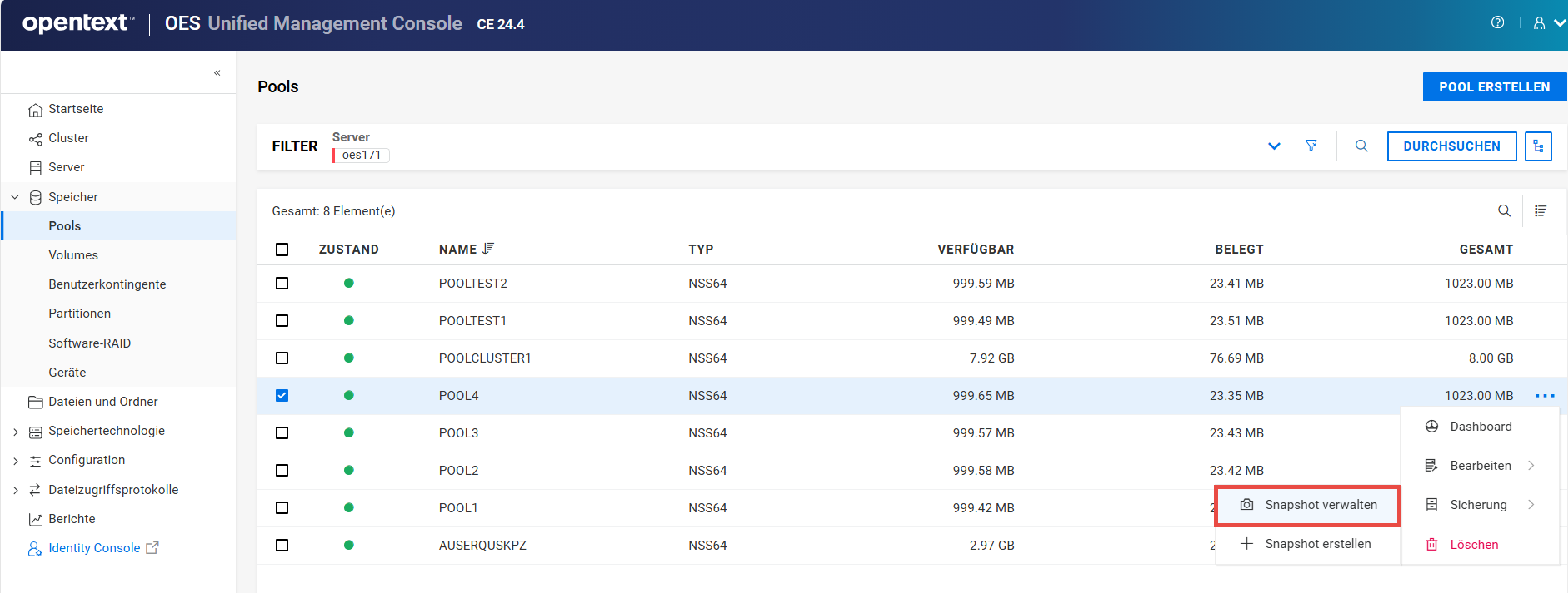 Das Umbenennen eines Clusterpools oder Volumes kann inkonsistentes Verhalten aufweisen. Wenn Sie nach dem Umbenennen keine Pools oder Volumes auflisten können, öffnen Sie UMC in einem anderen Fenster im Inkognito-Modus.