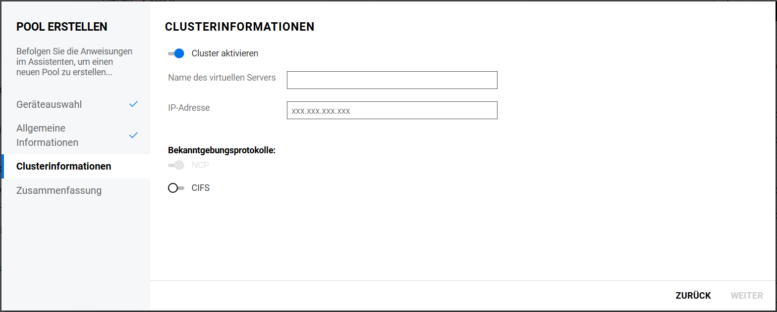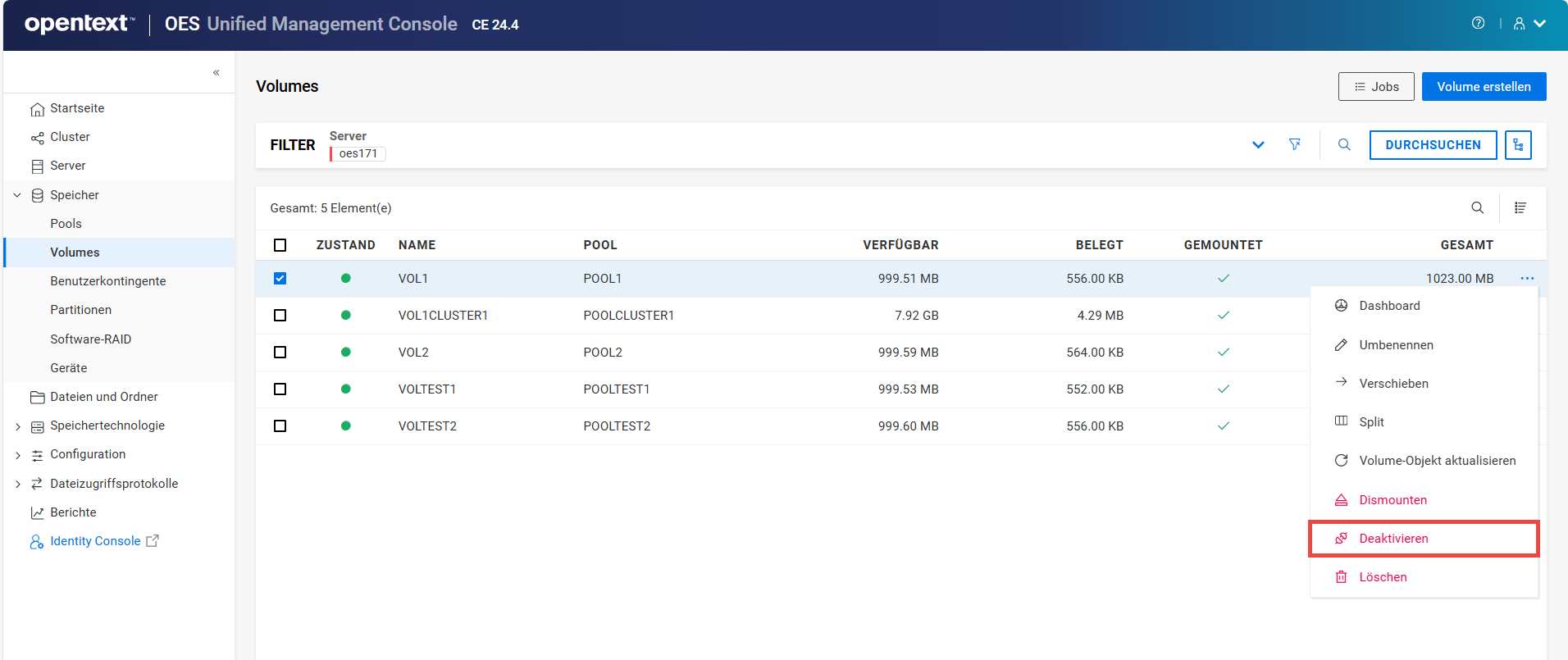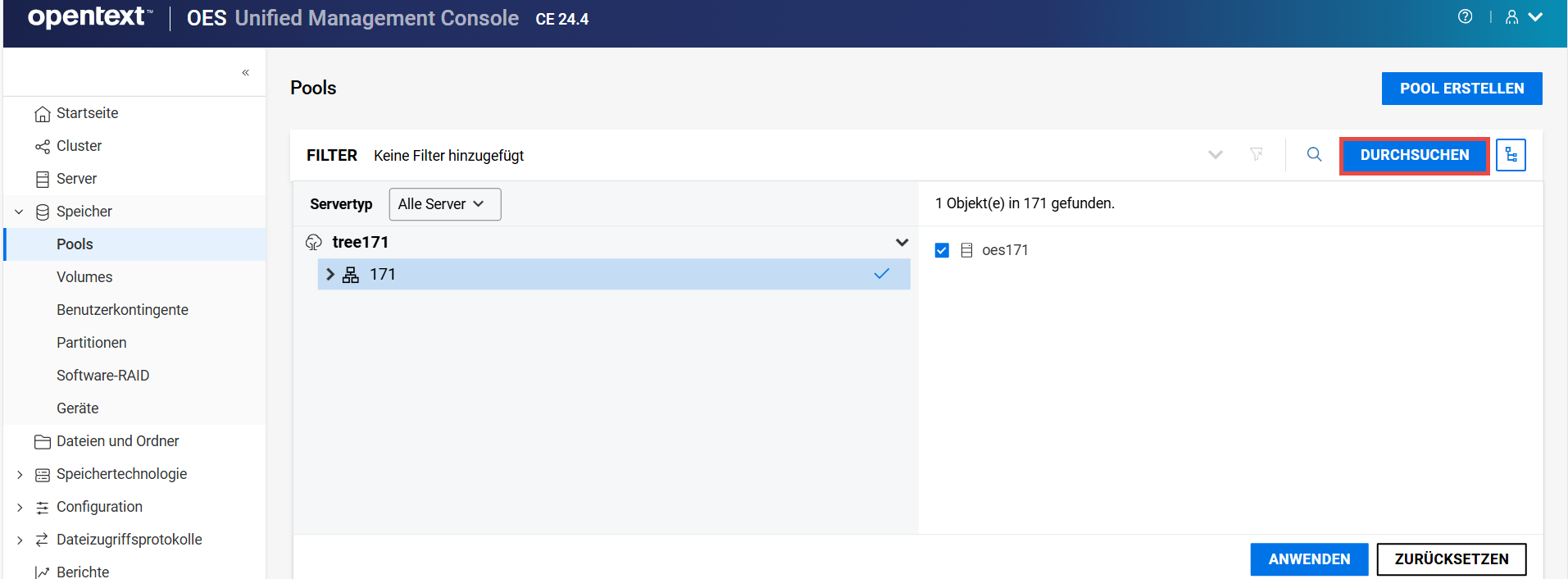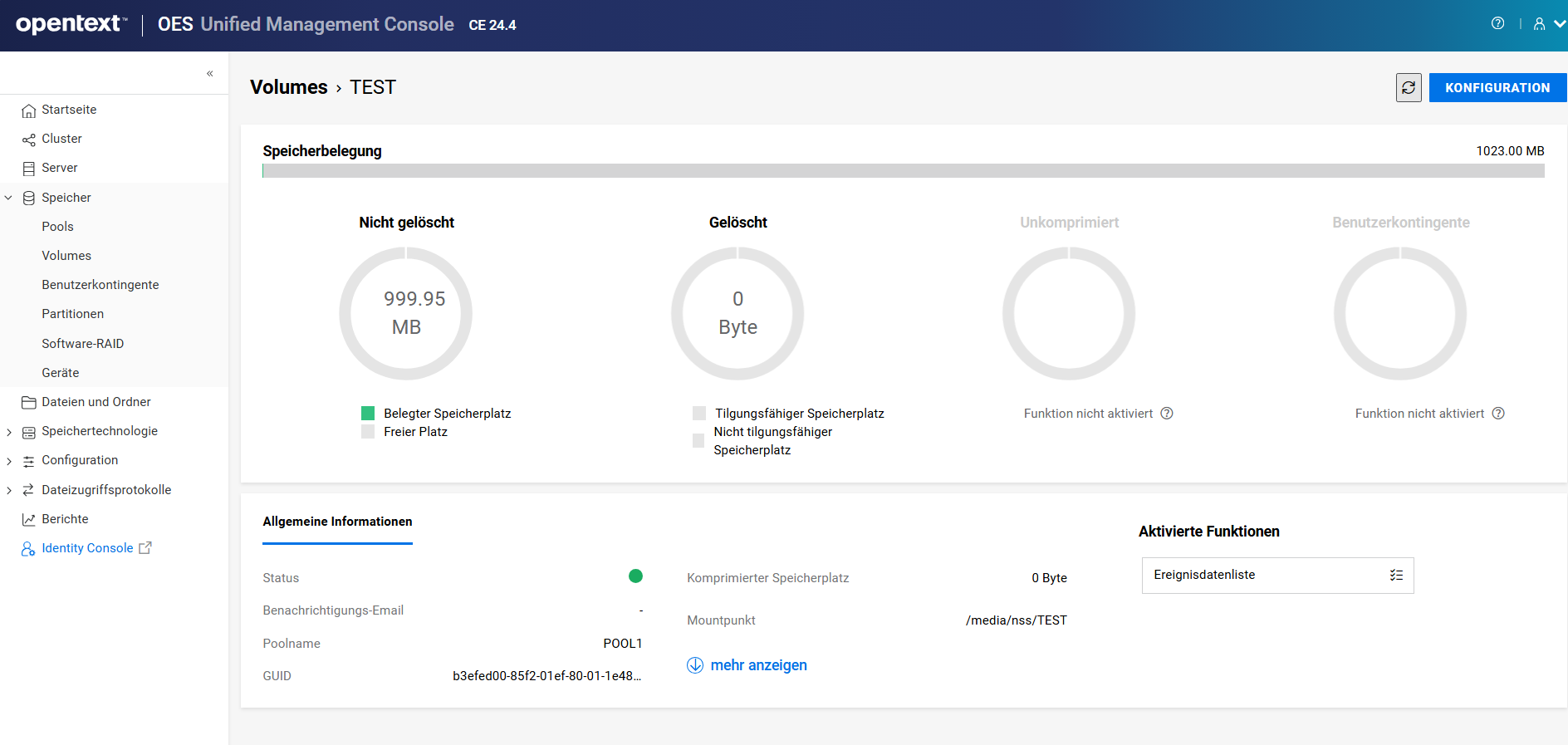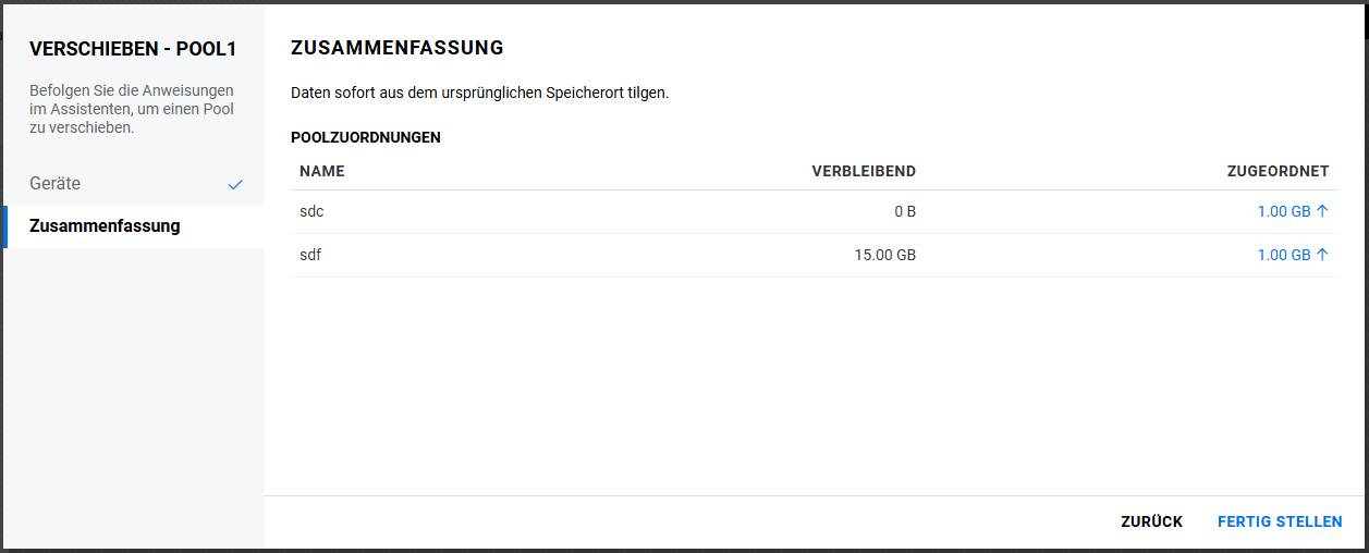Das Umbenennen eines Clusterpools oder Volumes kann inkonsistentes Verhalten aufweisen. Wenn Sie nach dem Umbenennen keine Pools oder Volumes auflisten können, öffnen Sie UMC in einem anderen Fenster im Inkognito-Modus.