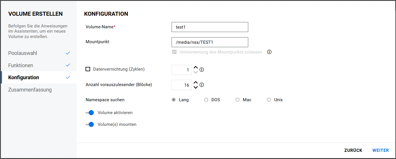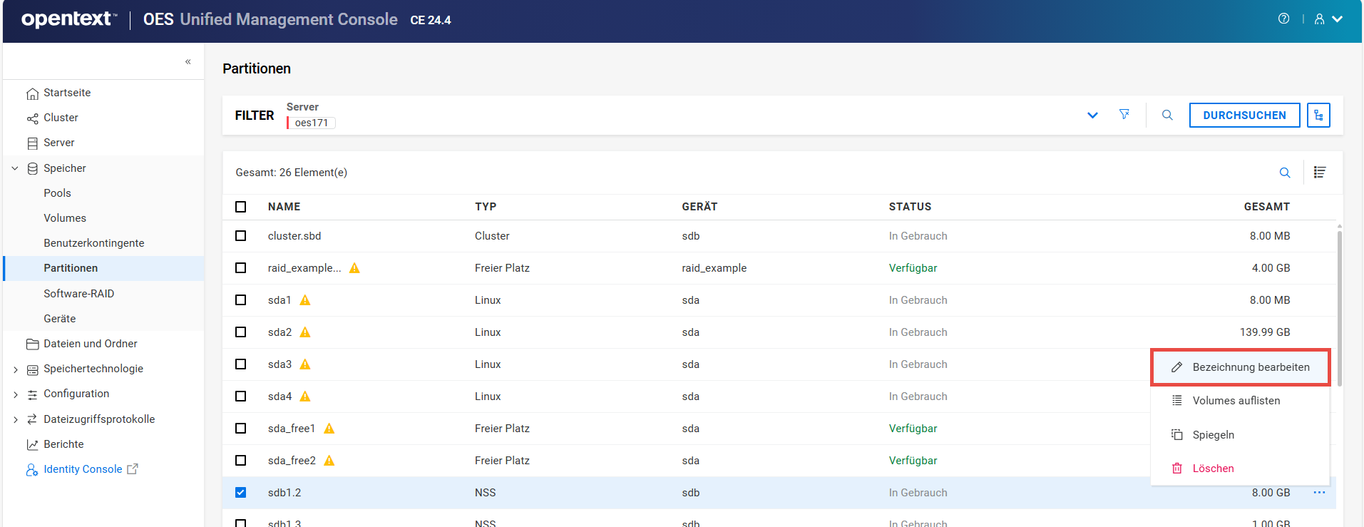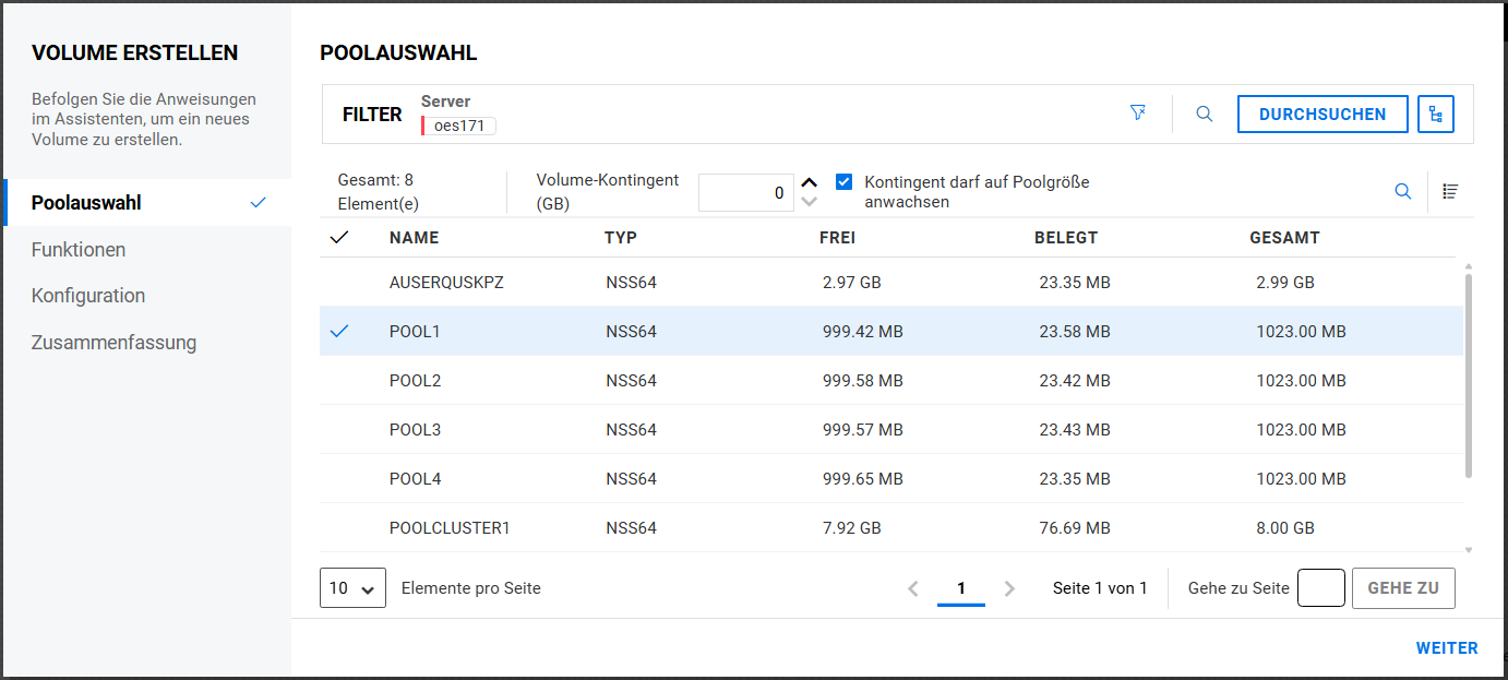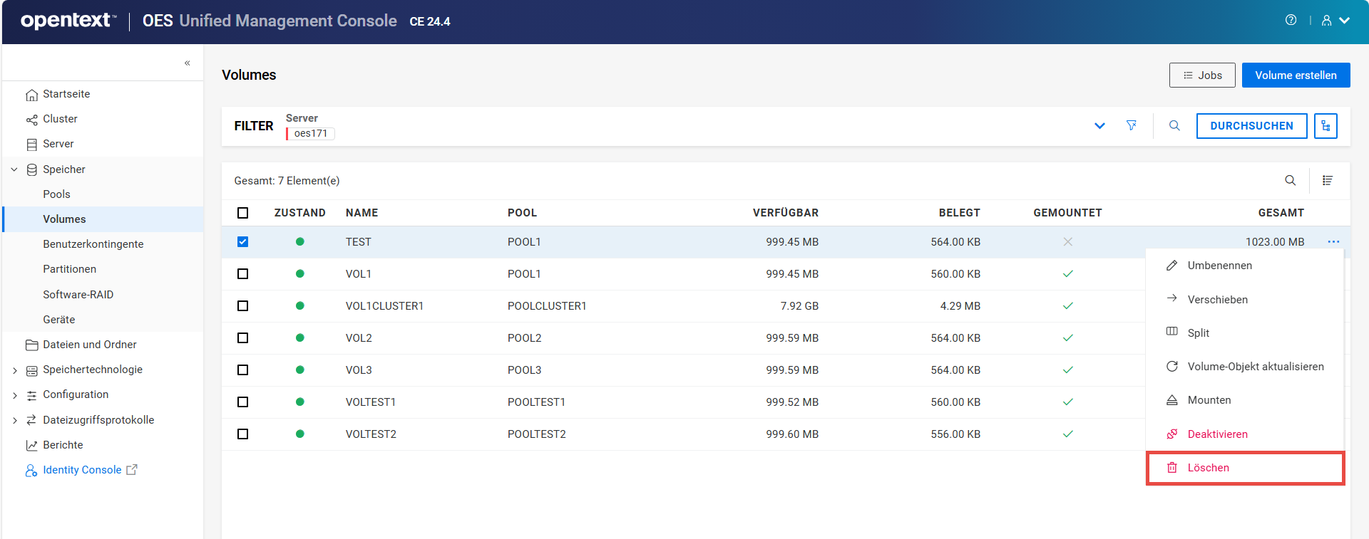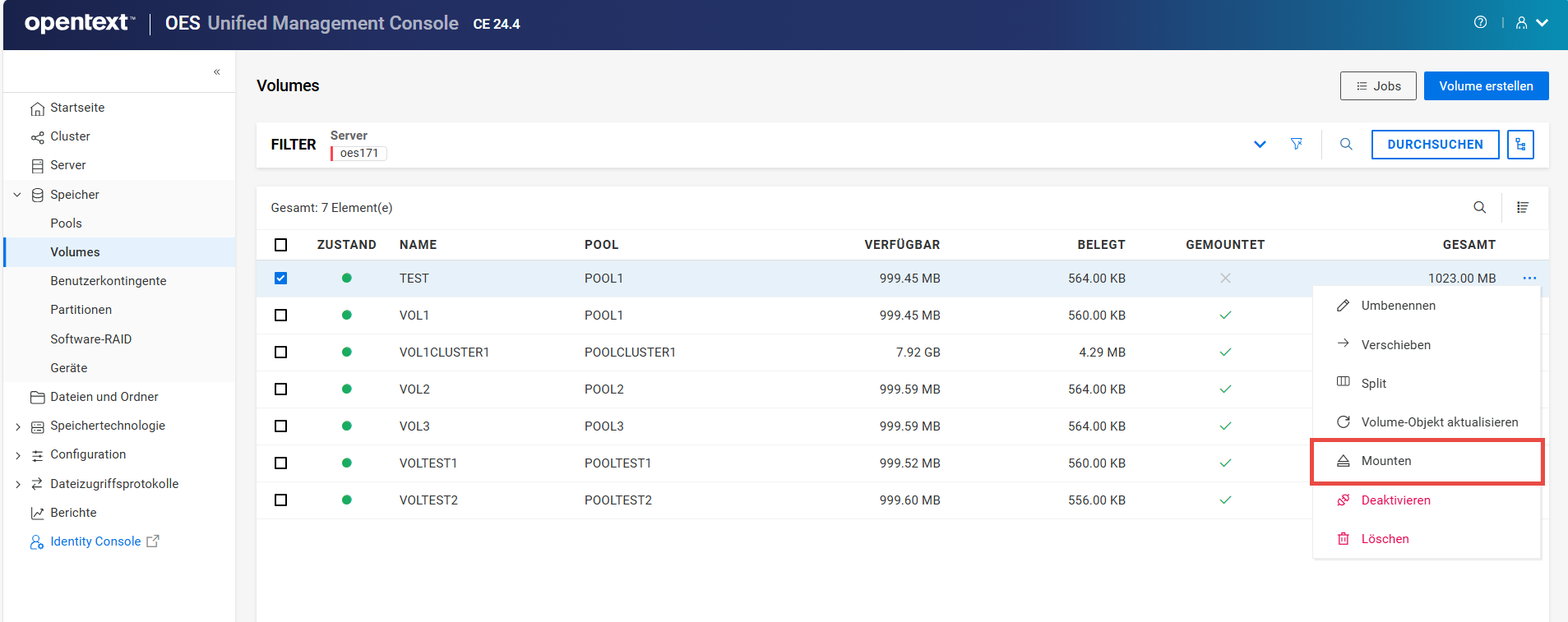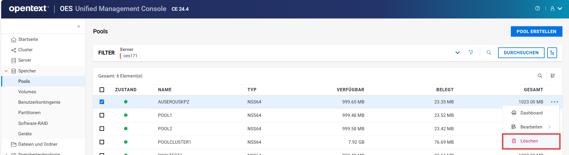 Das Umbenennen eines Clusterpools oder Volumes kann inkonsistentes Verhalten aufweisen. Wenn Sie nach dem Umbenennen keine Pools oder Volumes auflisten können, öffnen Sie UMC in einem anderen Fenster im Inkognito-Modus.