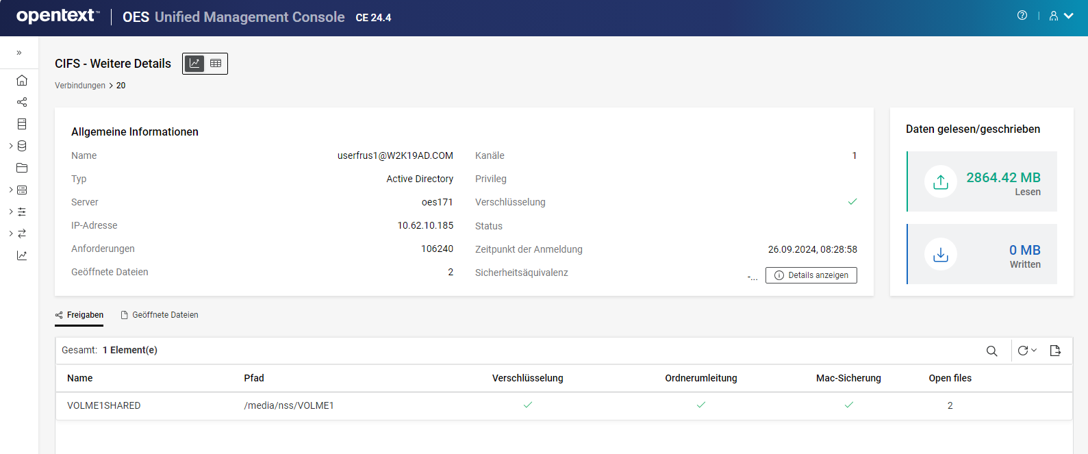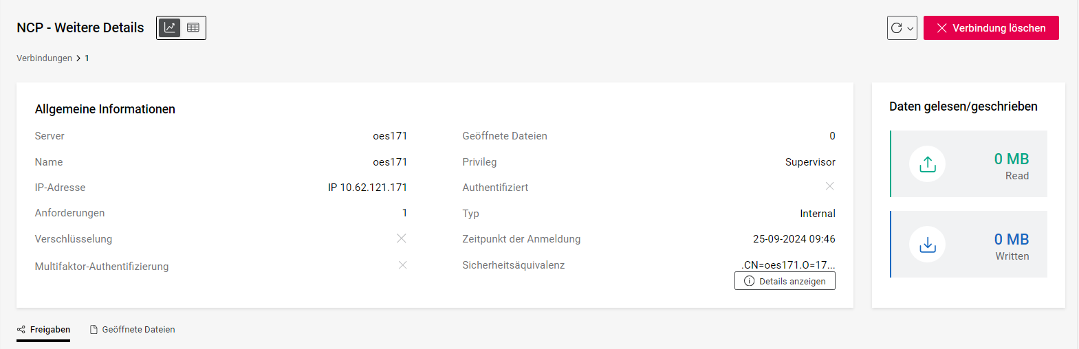 Tabellenansicht: Listet NCP- und CIFS-Verbindungen auf.