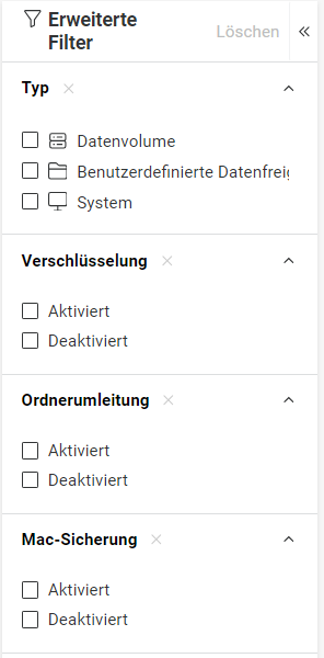 Ja, diese Einstellungen werden in der PostgreSQL-Datenbank gespeichert und sind benutzerspezifisch und über Logins, Browser und Geräte hinweg persistent. Dies gilt für die primären Filtereinstellungen. Wenn Sie z. B. zwei Cluster für die Verwaltung ausgewählt haben, die mit bestimmten Spalten angezeigt werden sollen, stehen Ihnen die benutzerspezifischen Einstellungen bei nachfolgenden Anmeldungen zur Verfügung.