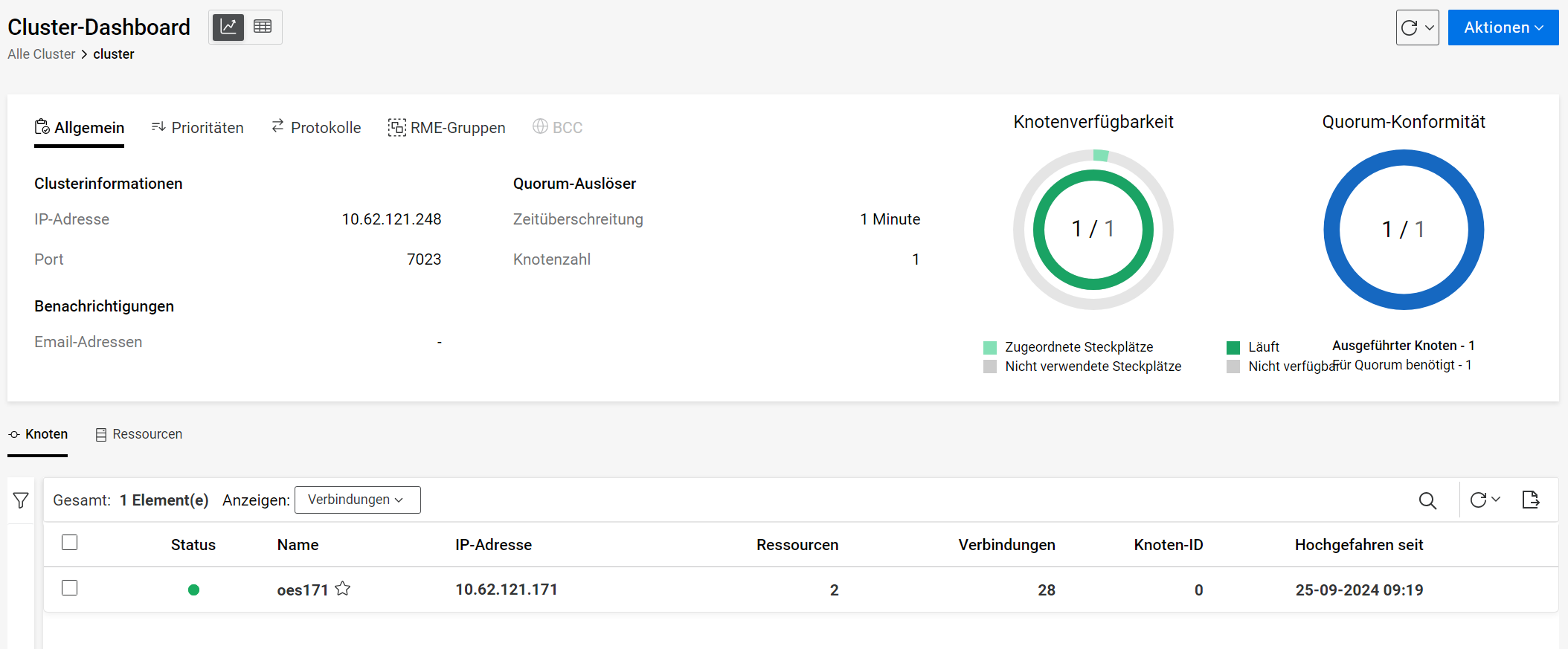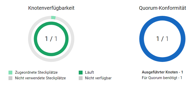 Quorum-Compliance: Zeigt die Anzahl der Knoten an, die erforderlich sind, damit das Quorum erreicht wird, und die Anzahl der ausgeführten Knoten.