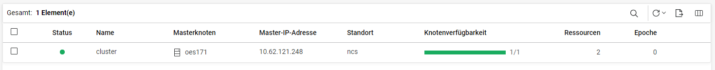 Für jedes Cluster-Objekt werden folgende Informationen angezeigt.
