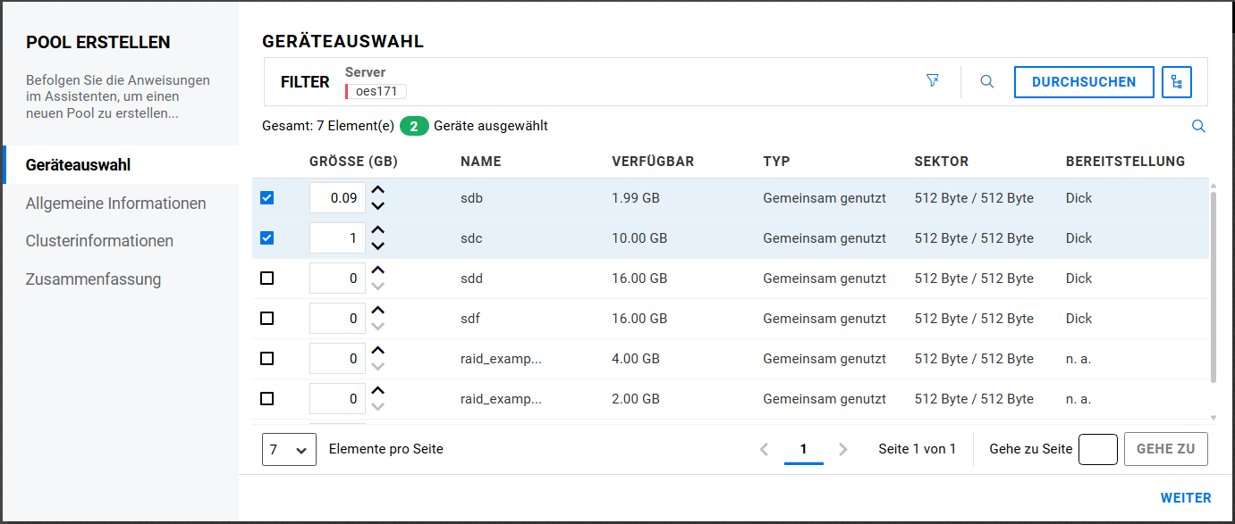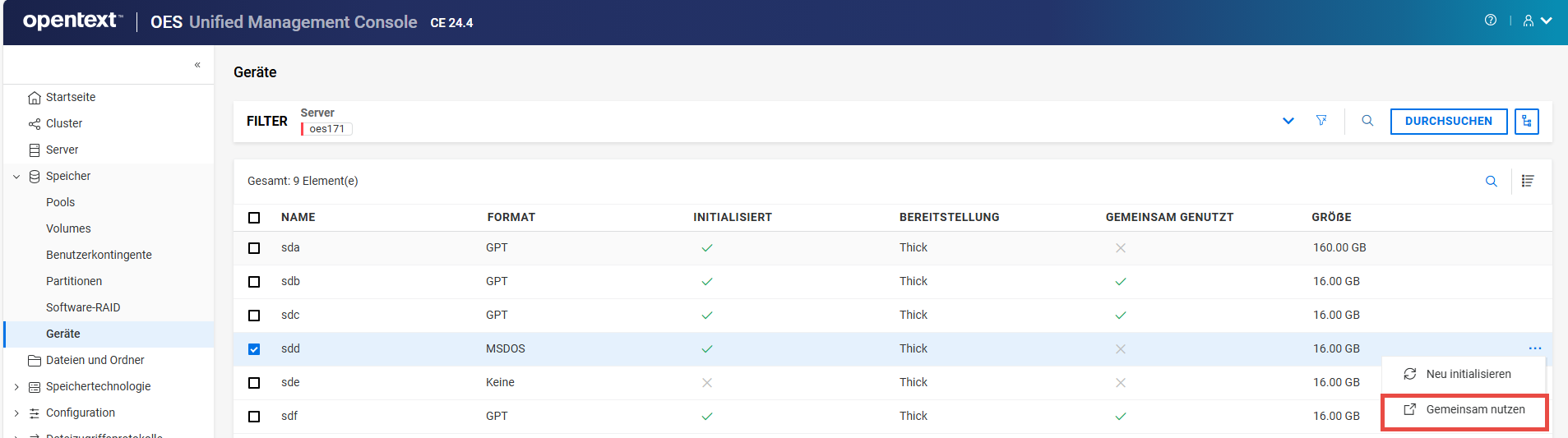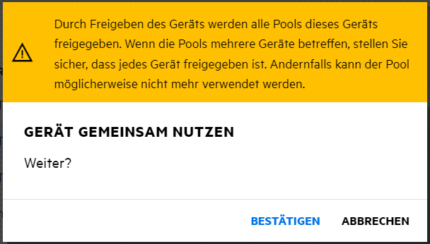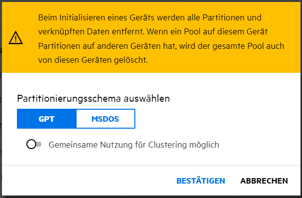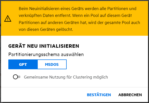 Das Erstellen eines Pools auf einem gemeinsam genutzten Gerät ist nicht zulässig, wenn die Einrichtung nicht für Cluster konfiguriert ist.