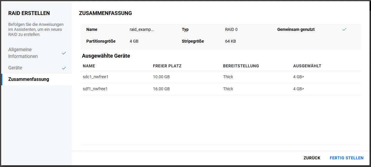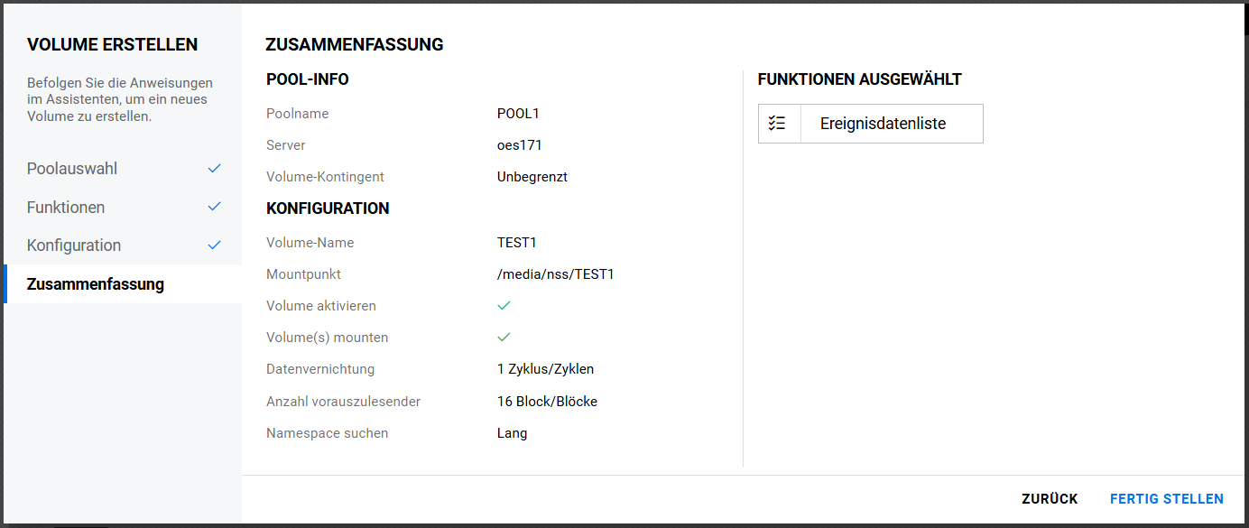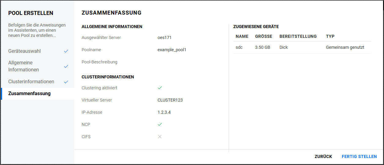 Überprüfen Sie auf der Seite Zusammenfassung die Container und Server und klicken Sie dann auf Fertigstellen.