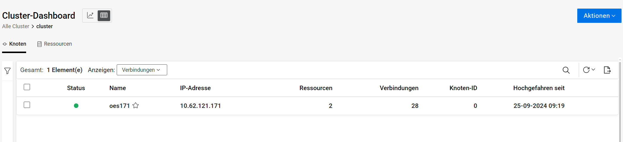 Clusterinformationen: Zeigt die IP-Adresse an, die an den Master-Knoten gebunden ist und unabhängig von Serveränderungen mit dem Master-Knoten verknüpft bleibt. Die Standard-Port-Nummer lautet 7023.