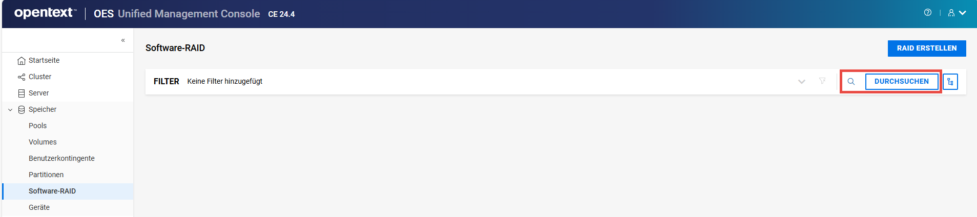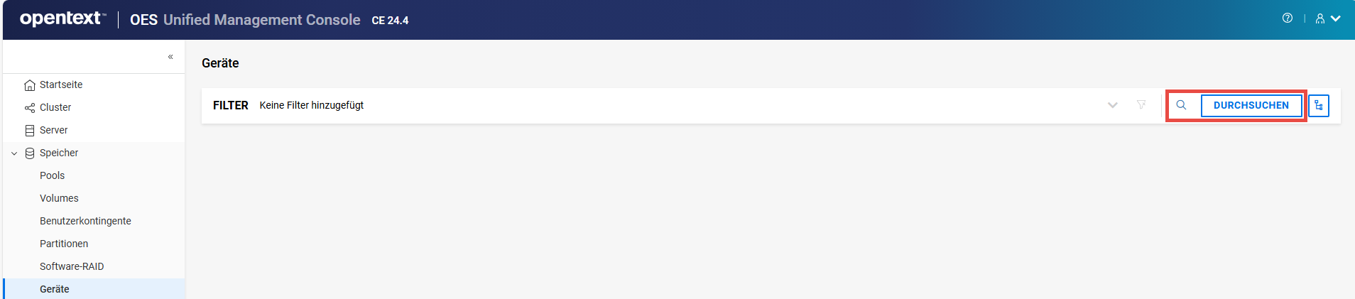 Bei der ersten Anmeldung ist die Cluster-Listenseite leer. Beim Durchsuchen werden jedoch aufgrund der erweiterten und kontextsensitiven Filterfunktionen nur Cluster-Objekte aufgelistet. Die ausgewählten Cluster werden auf der Seite Cluster aufgelistet.