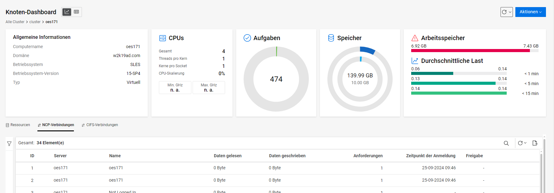 Wenn der CIFS-Service auf dem Clusterknoten nicht verfügbar ist, kann UMC die Verbindungen im Cluster-Dashboard nicht abrufen. Der Knoten ist ausgegraut und es können über UMC keine Aktionen auf dem Knoten ausgeführt werden.